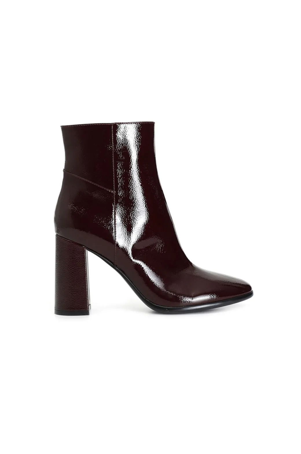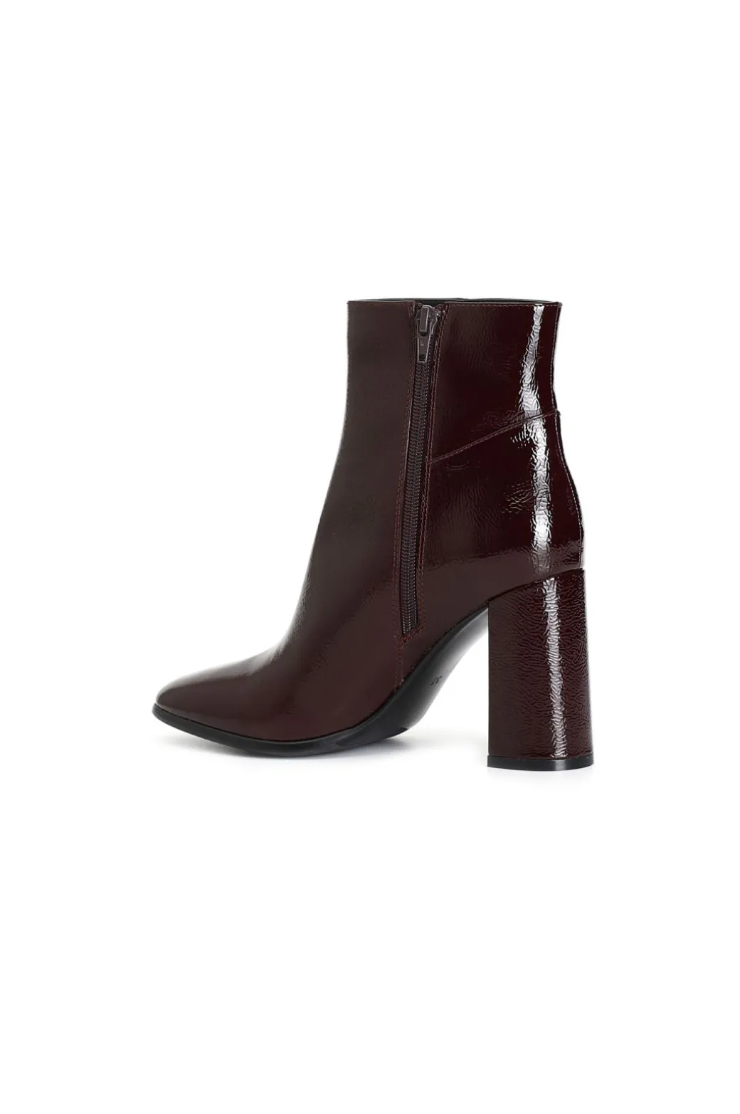 Tronchetto da donna in pelle verniciata. cerniera nella parte interna. tacco squadrato 88 mm. il soletto è in pelle. calzatura molto versatile e chic per interpretare con stile i look da ufficio e per il tempo libero.