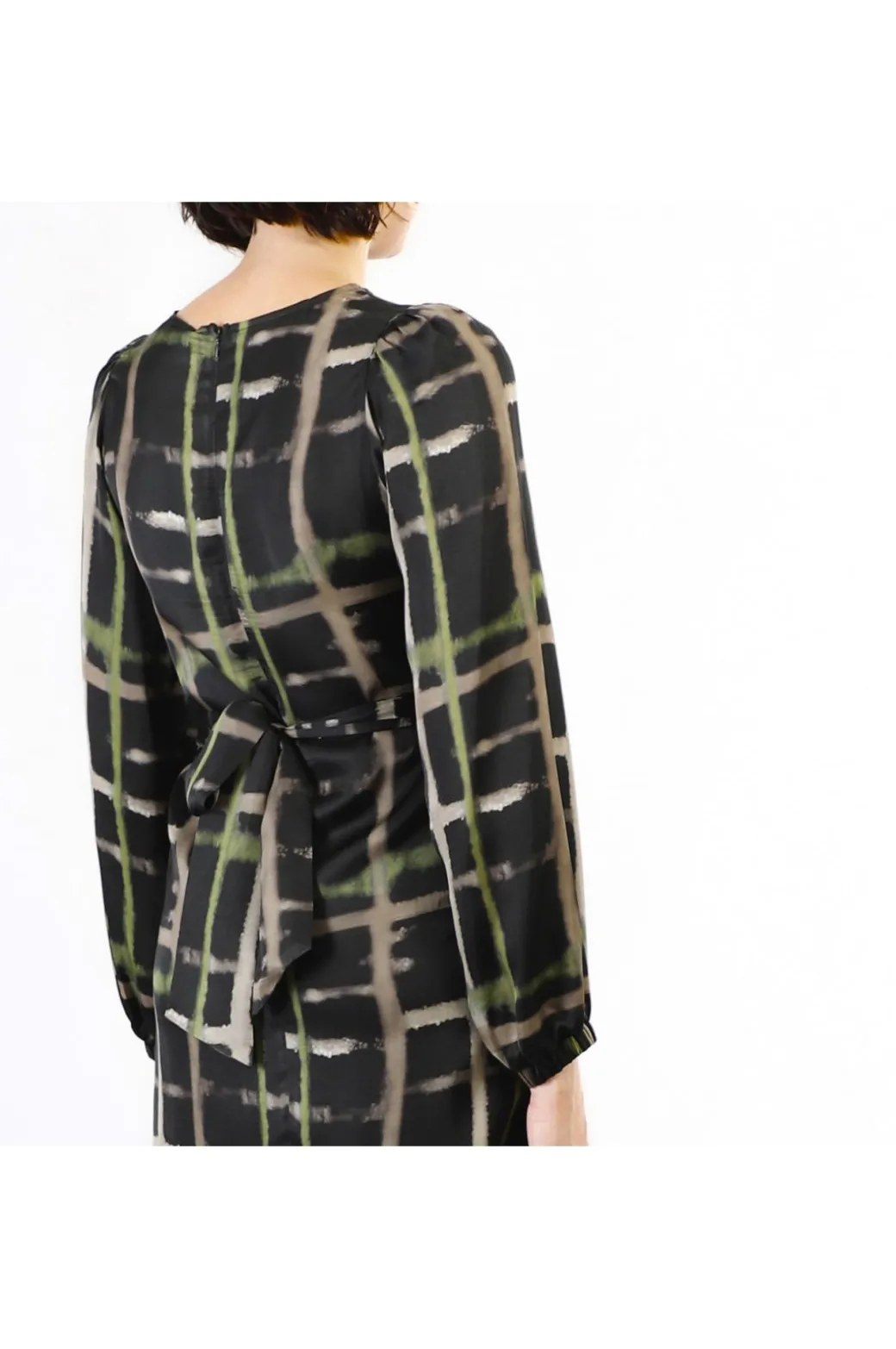 abito dritto stampato check pistacchio