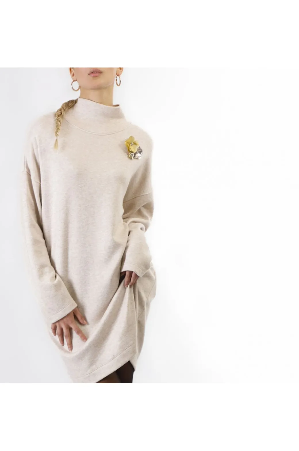 Abito in felpa dalla mano calda. collo alto e applicazione a fiore sulla parte frontale dell’abito. tasche laterali. capo estremamente comodo funzionale e di tendenza.