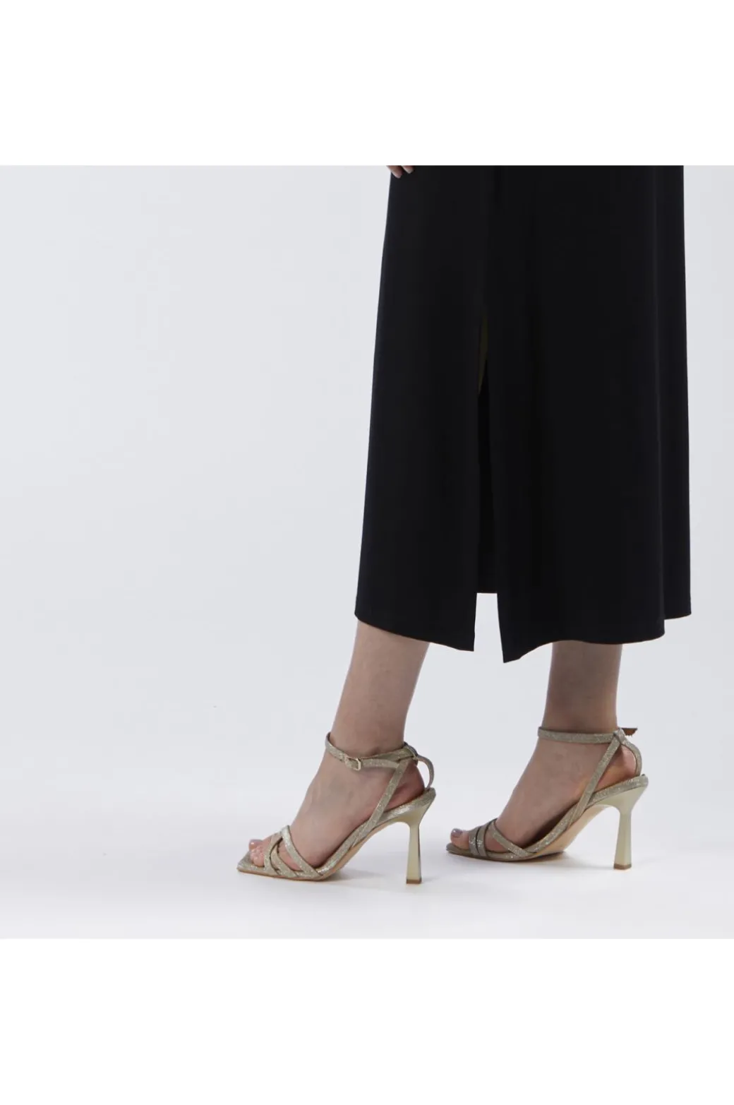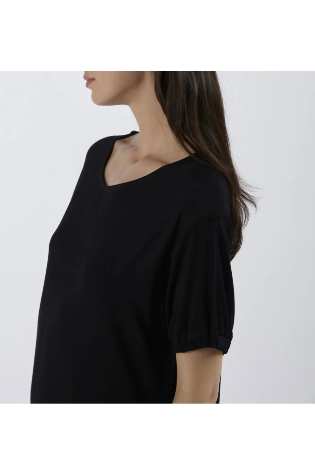 Abito lungo con spacchi laterali e placchetta dorata logata alle spalle. abito realizzato in jersey di viscosa. maniche corte a palloncino.