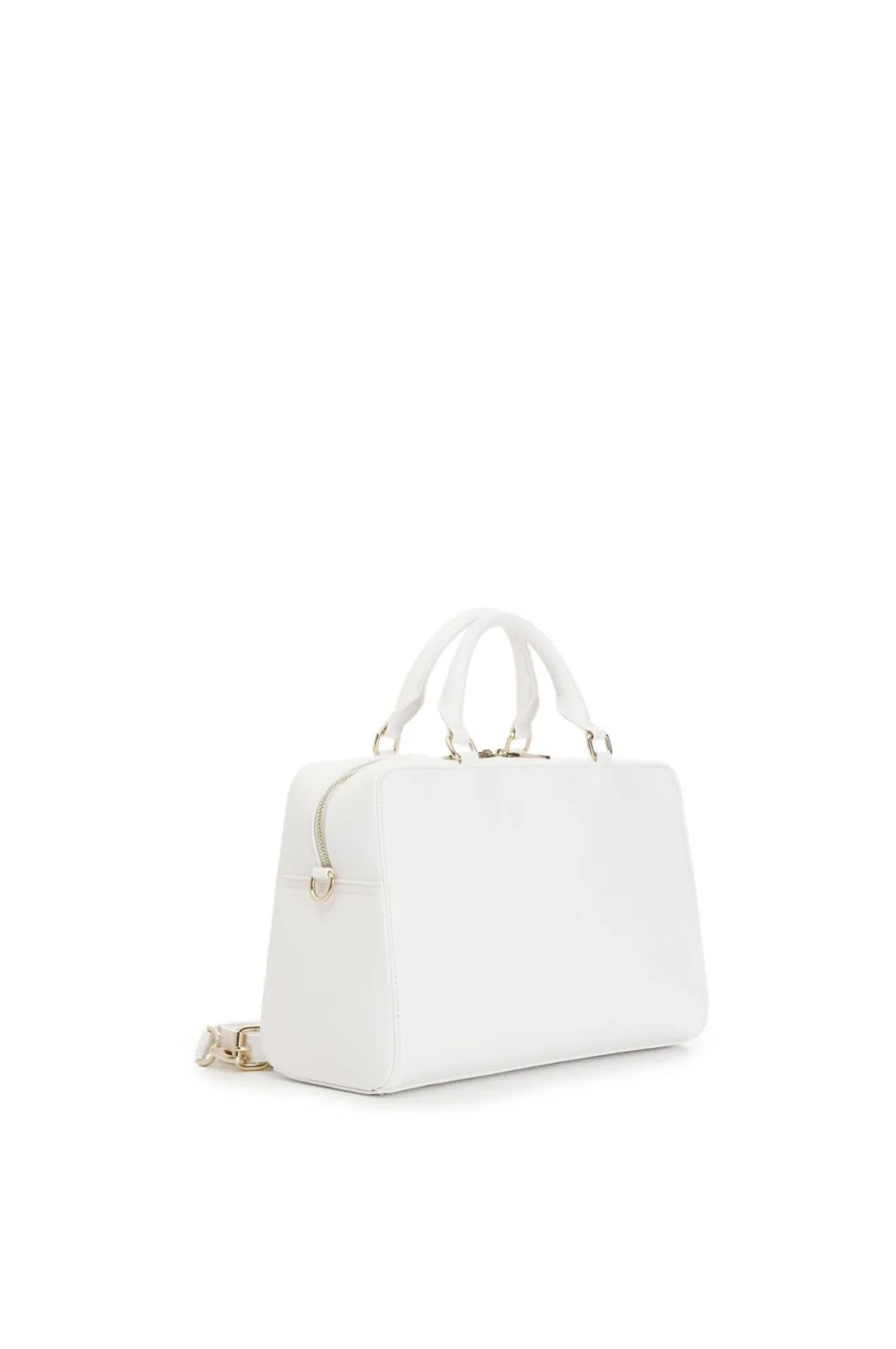 Bauletto con pannello intrecciato effetto stuoia. logo metallo sulla parte frontale della borsa. manici tubolari. chiusura con cerniera. borsa dotata di tracolla.
