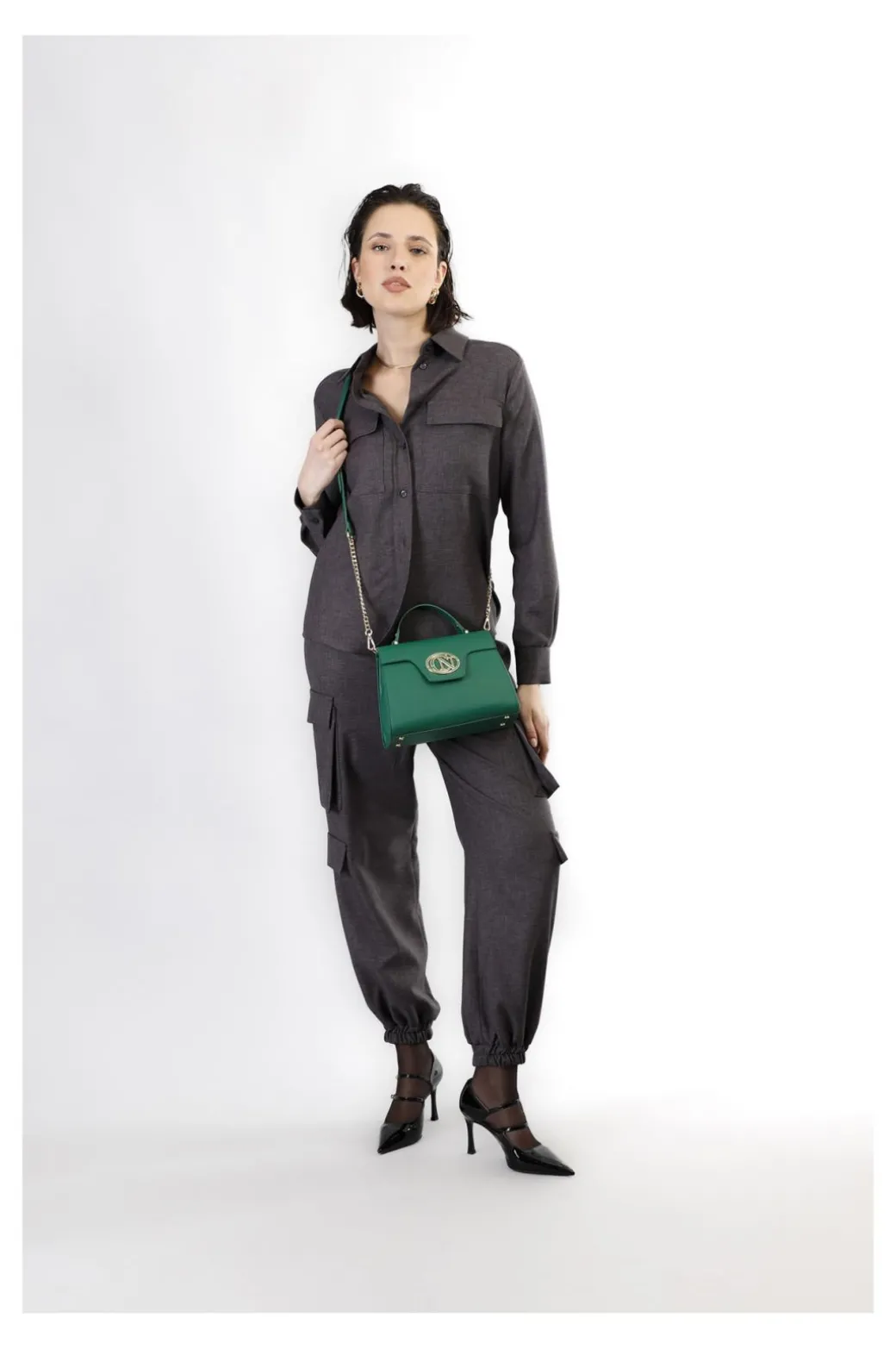 Be the first to review “borsa a mano con pattina in saffiano con logo ovale smaltato in tono verde” Annulla risposta
