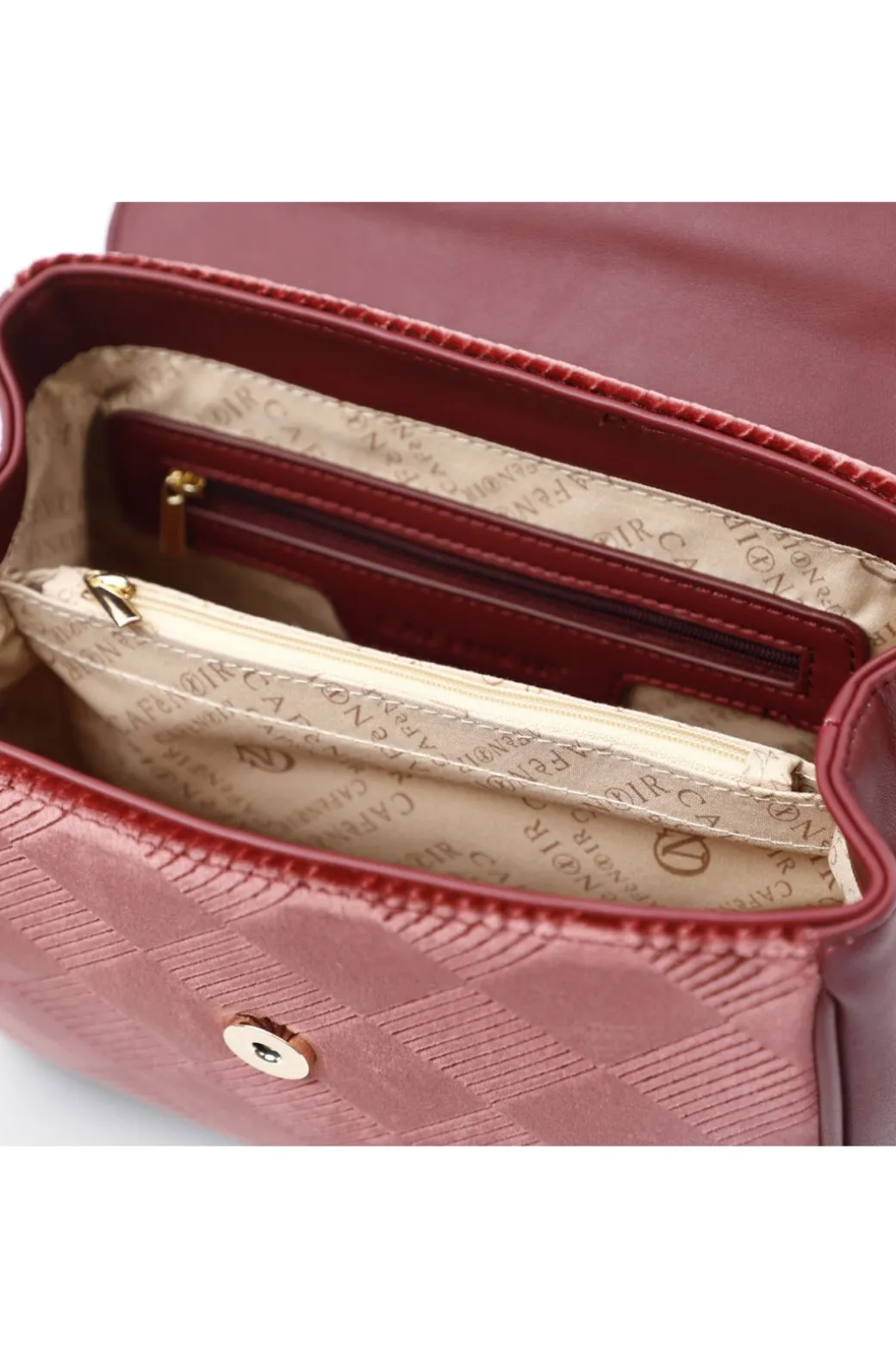 Borsa a mano con pattina in velluto con logo embossed. doppio scomparto e taschino interno con zip. placchetta metallica con logo cafènoir sulla parte laterale. borsa dotata di tracolla regolabile.