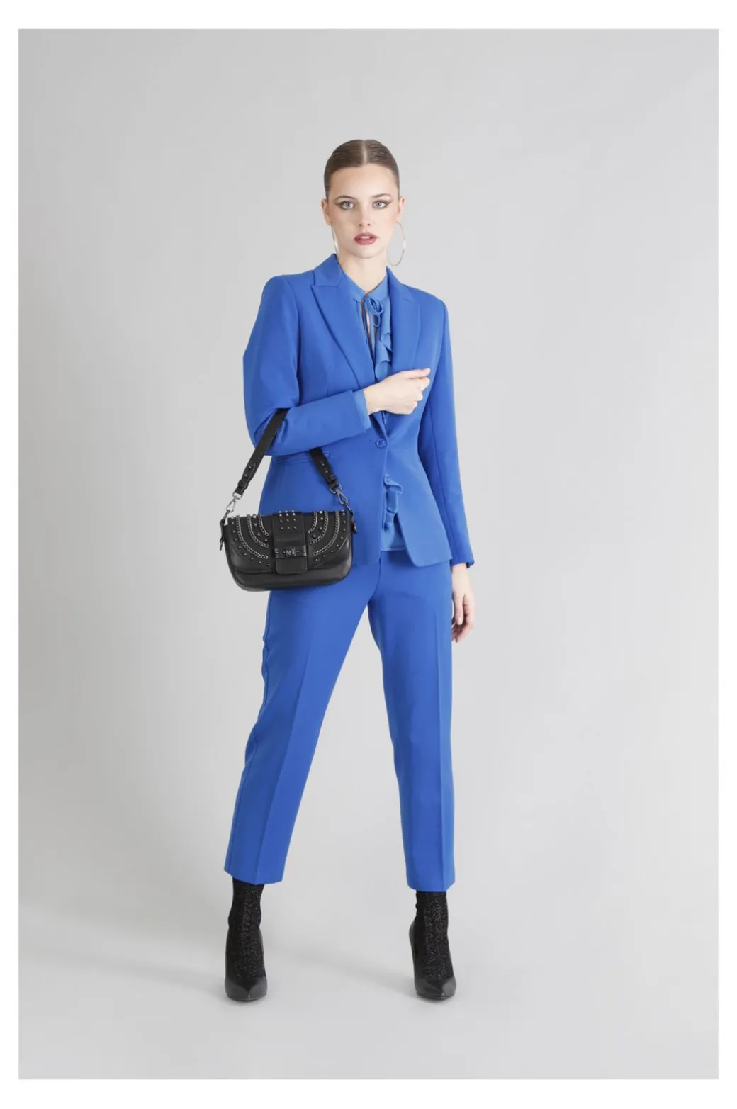 Borsa a spalla con borchie e catene. placchetta metallica con logo cafènoir. doppia chiusura con cernierae a calamita. borsa dotata di tracolla regolabile.