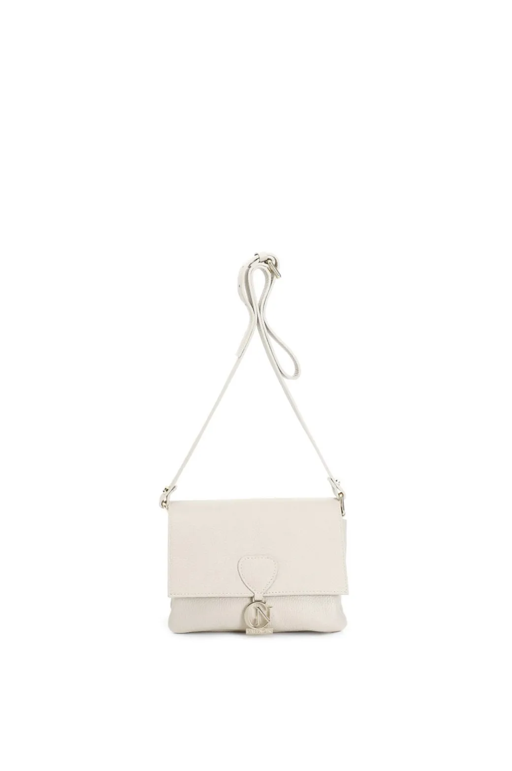 borsa a spalla con pattina in pelle dollaro con tracolla regolabile panna