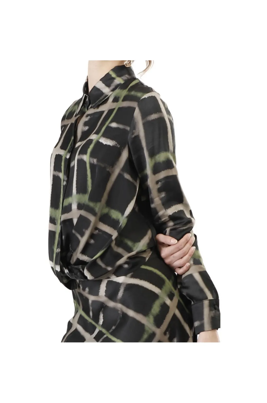 Camicia a maniche lunghe con motivo al fondo tipo nodo. realizzata in viscosa stampata. chiusura con bottoni. must-have del guardaroba da indossare il giorno con un paio la gonna in coordinato o jeans.