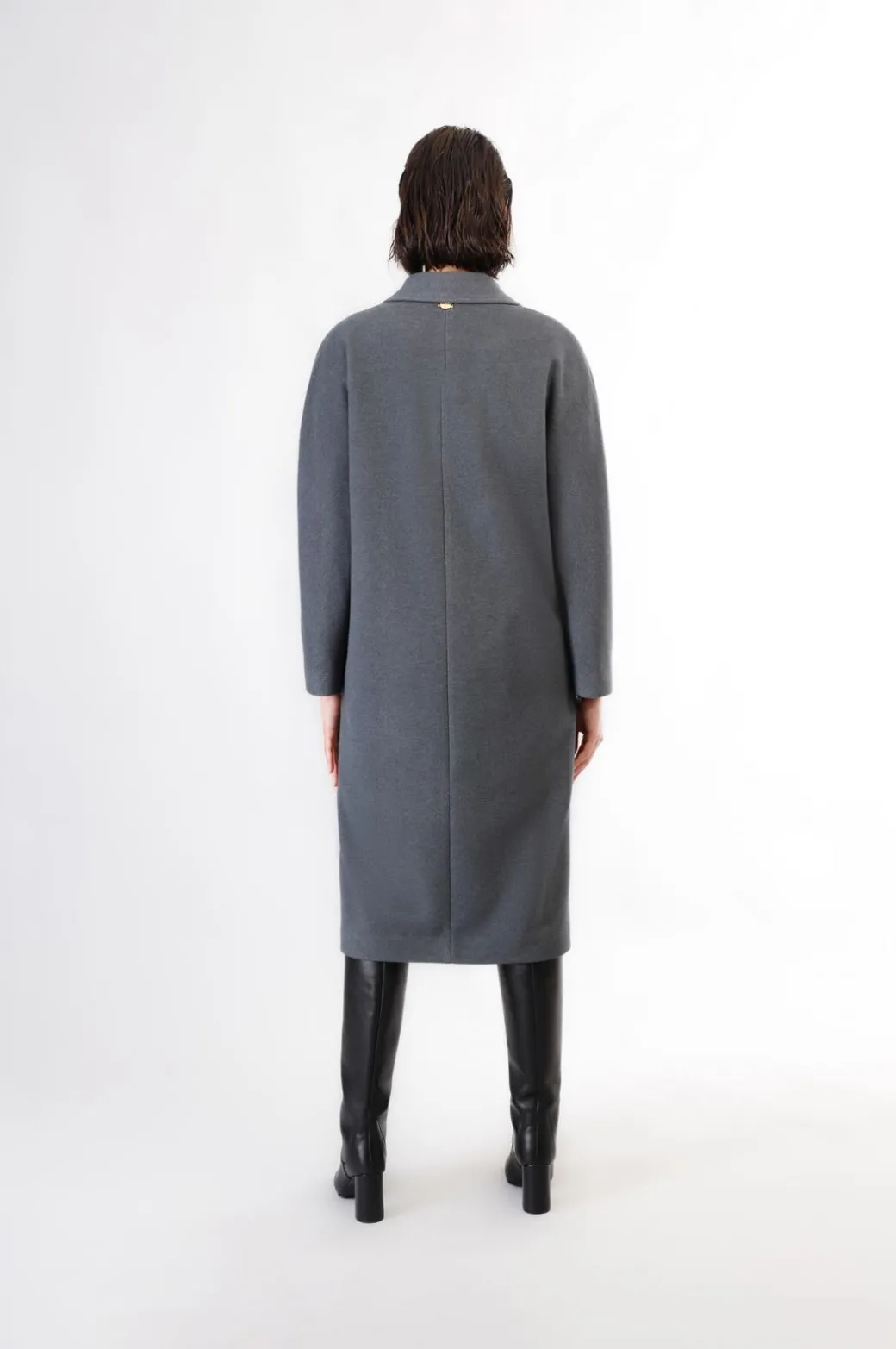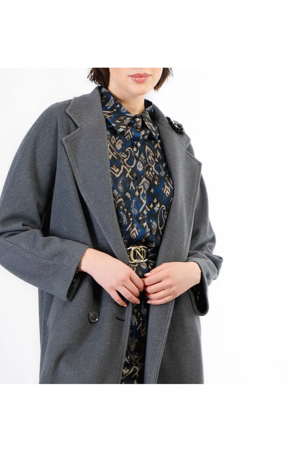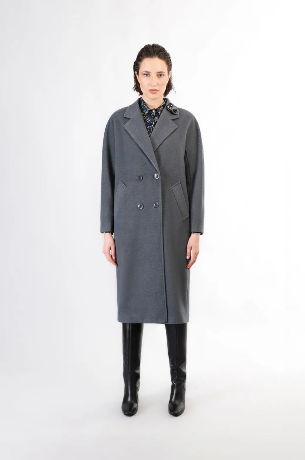 Cappotto doppiopetto dalla linea over con maniche kimono rendono questo capo perfetto intramontabile senza tempo. da indossare sia con completi dal taglio maschile che abiti iper femminili o semplicemente con jeans e maglia.