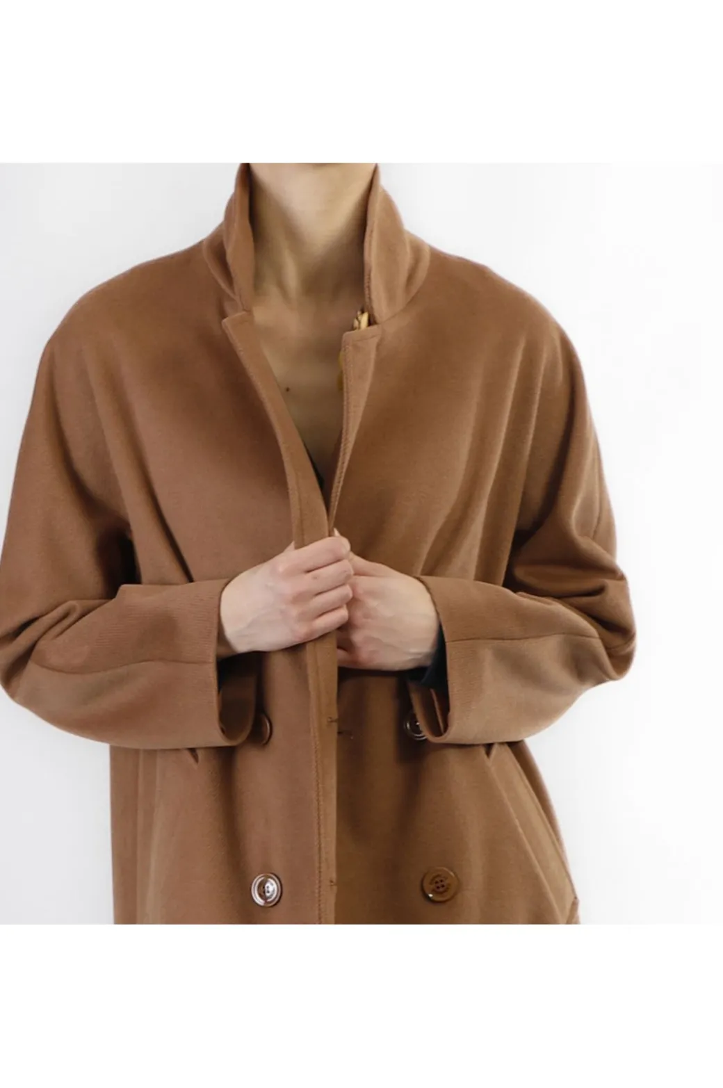 Cappotto doppiopetto dalla linea over con maniche kimono rendono questo capo perfetto intramontabile senza tempo. da indossare sia con completi dal taglio maschile che abiti iper femminili o semplicemente con jeans e maglia.