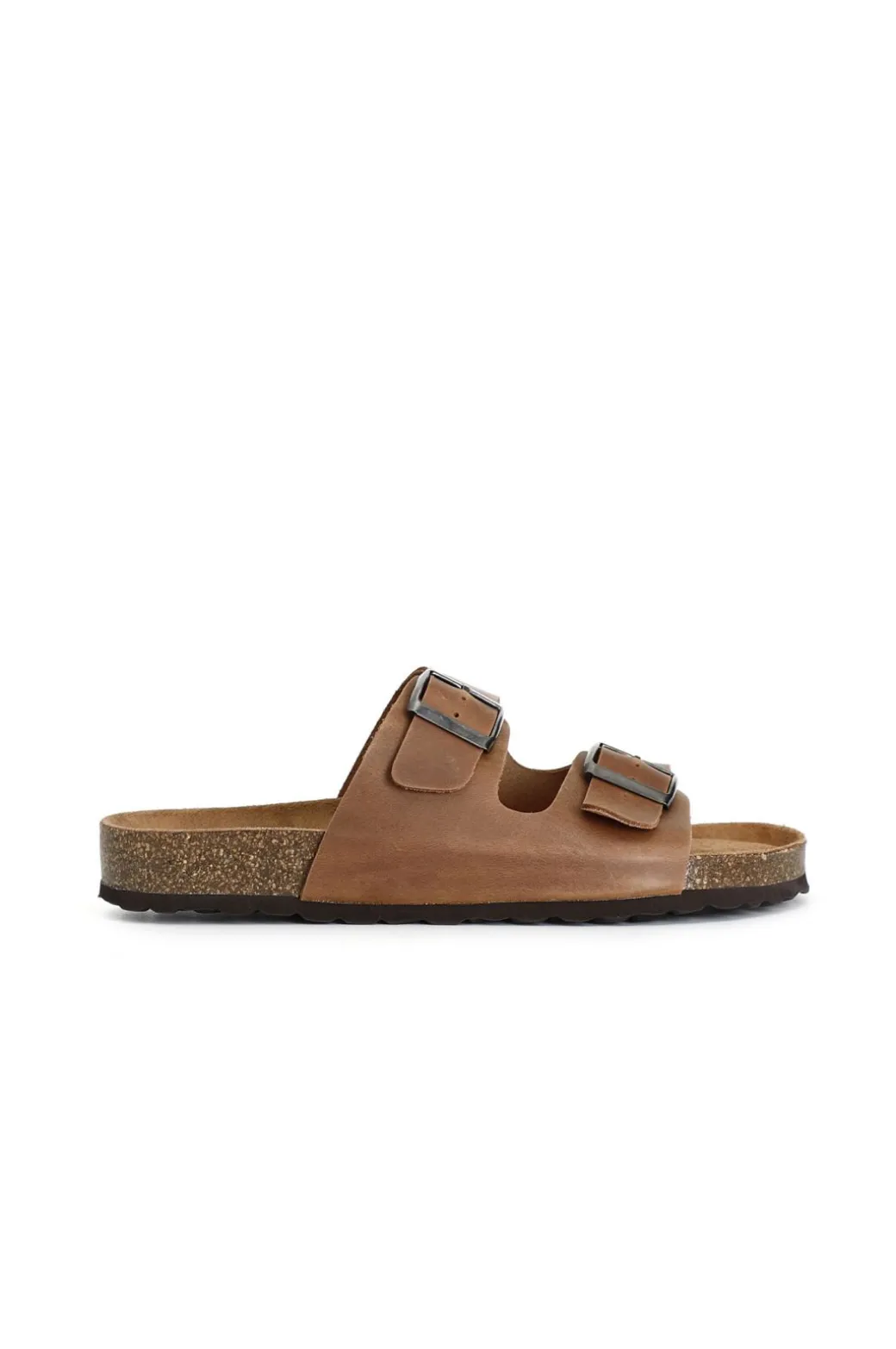 Ciabatta uomo in pelle. doppia fascia con fibbie. comodo fussbett.