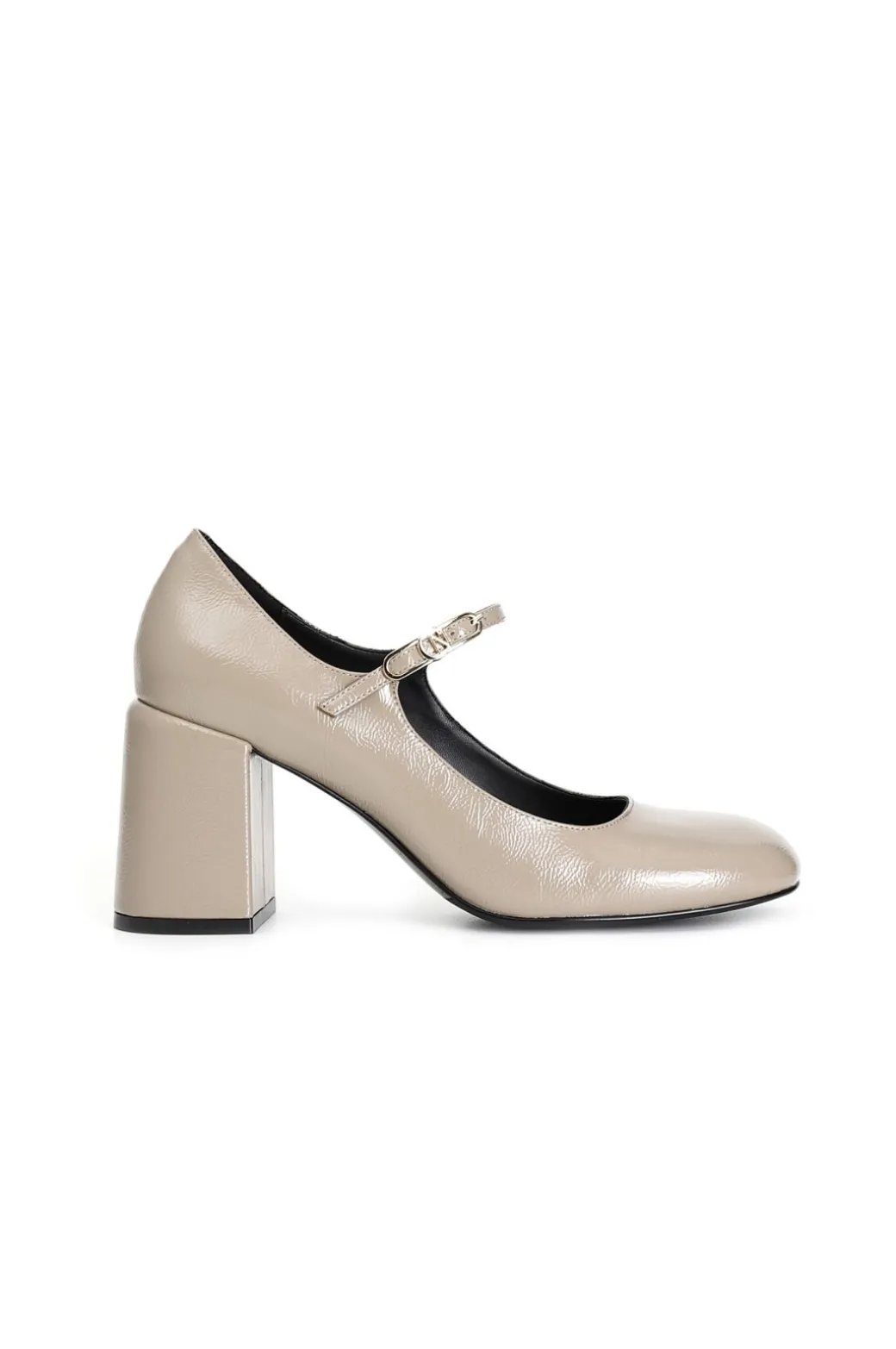 Décolleté in pelle naplak con cinturino e fibbia personalizzata. tacco fasciato alto 80 mm. il soletto è in pelle. ideale in abbinamento a molteplici look da mattina a sera.