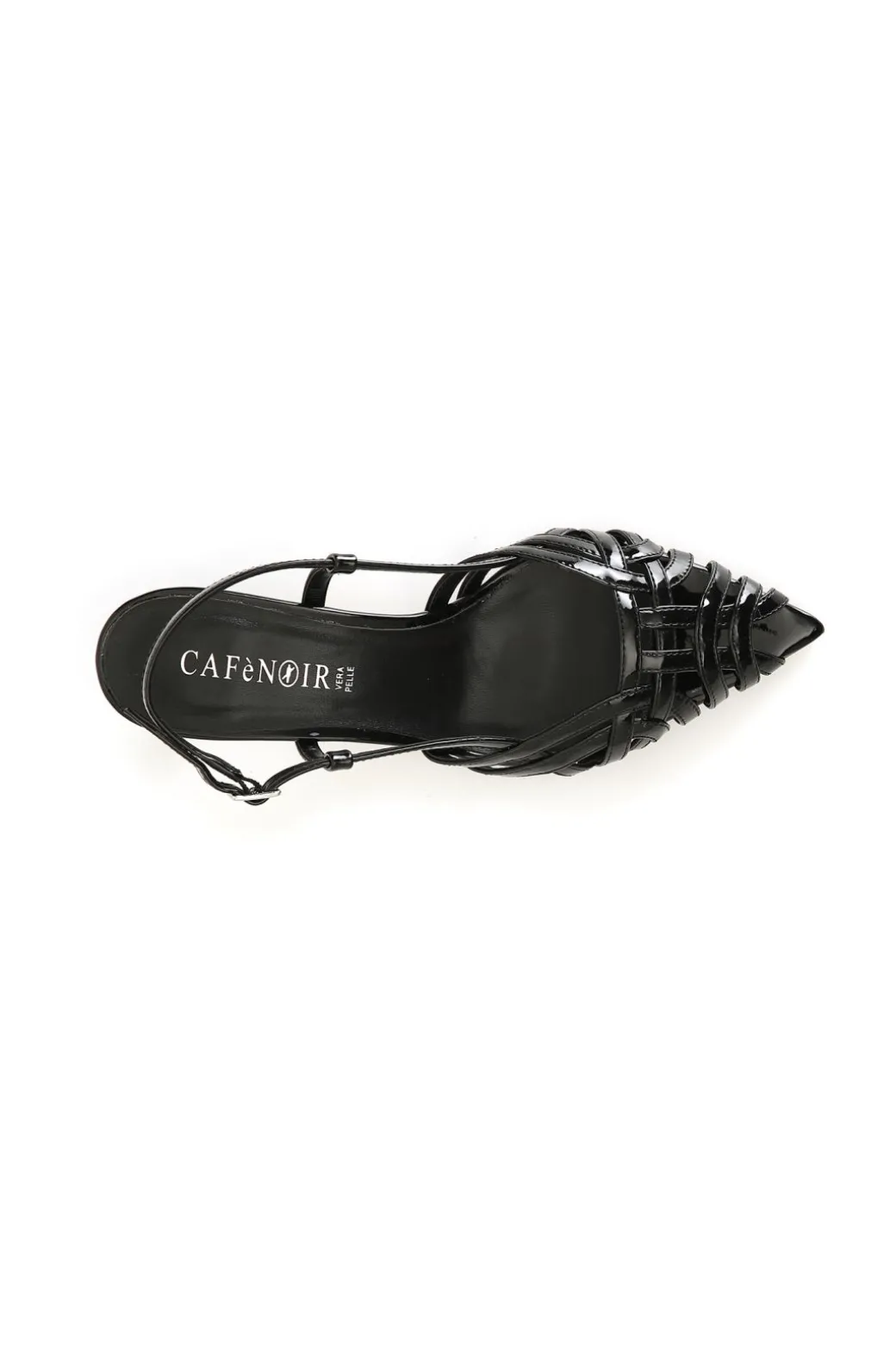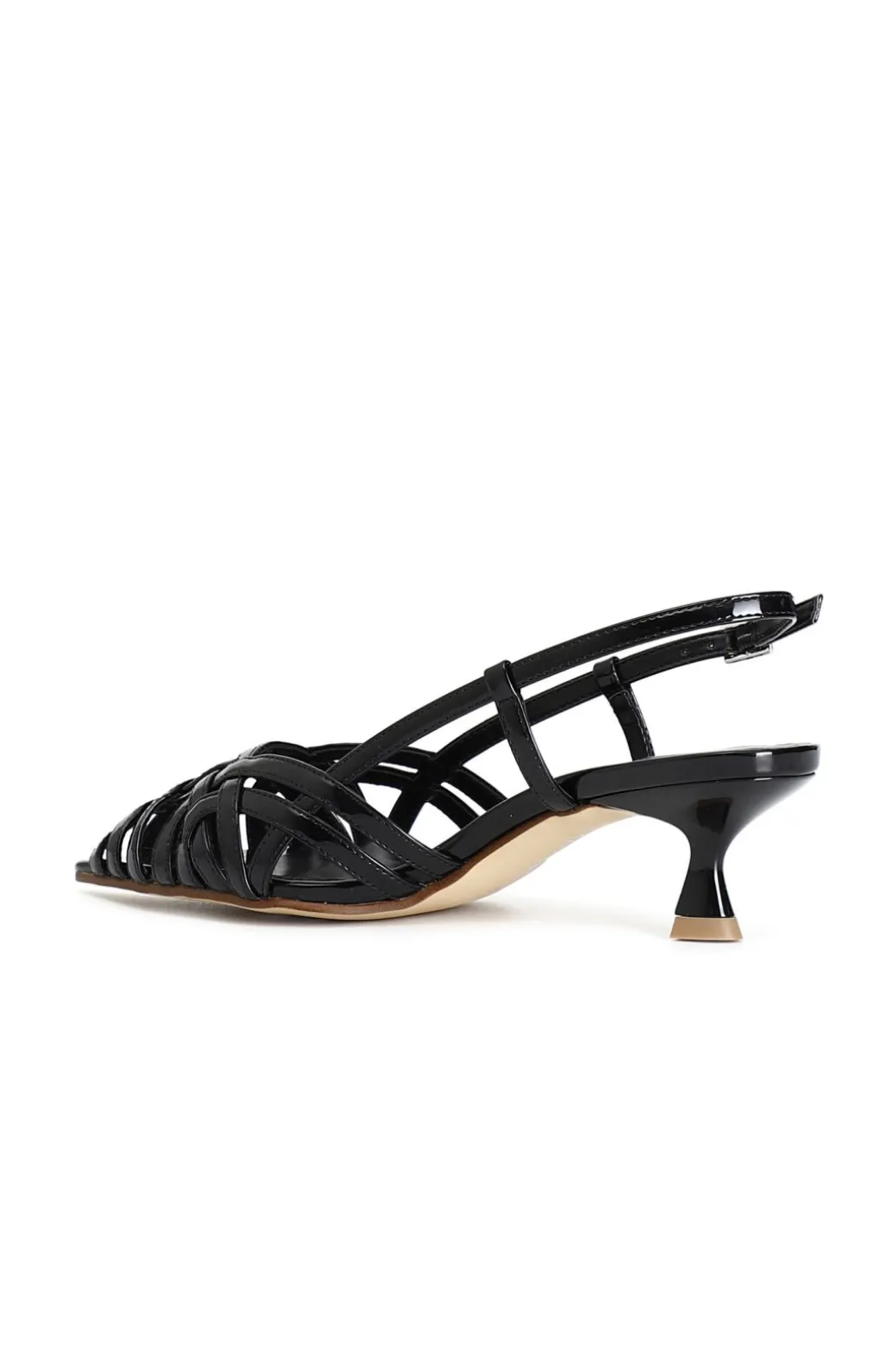 Décolleté con laccio dietro. tomaia a gabbia effetto vernice. forma sfilata. tacco a rocchetto alto 45mm. calzatura alla moda ma indossabile anche nel quotidiano per soddisfare le esigenze di uno stile di vita dinamico.