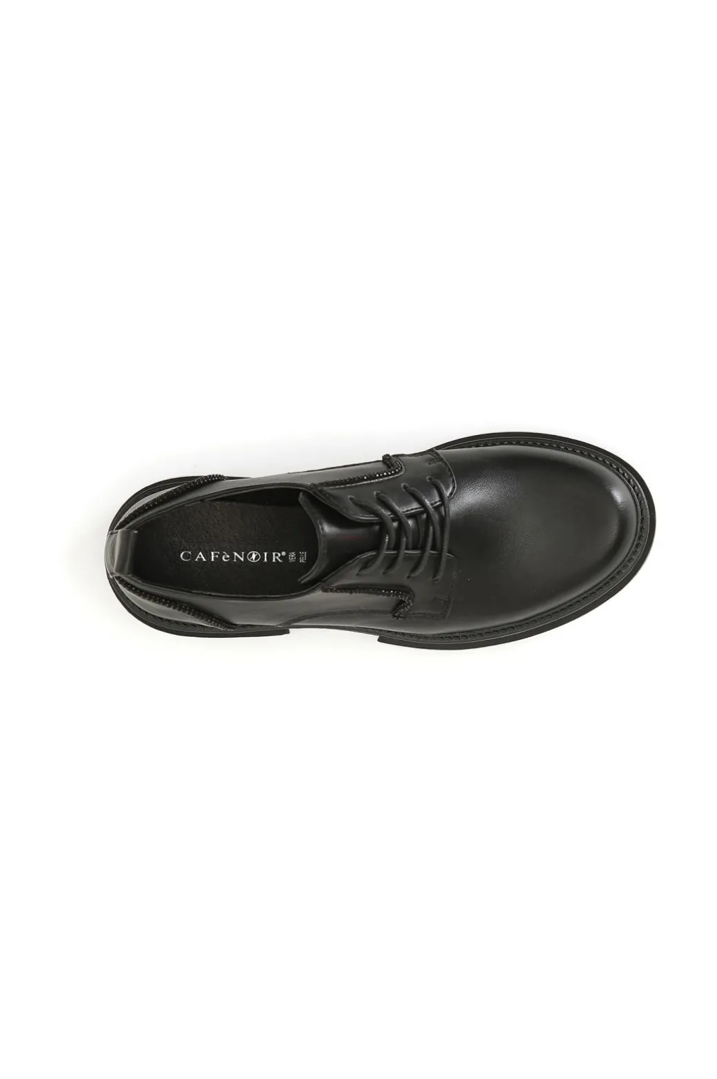Scarpa derby da donna allacciata in similpelle spazzolata con profili in strass. il soletto è in pelle.