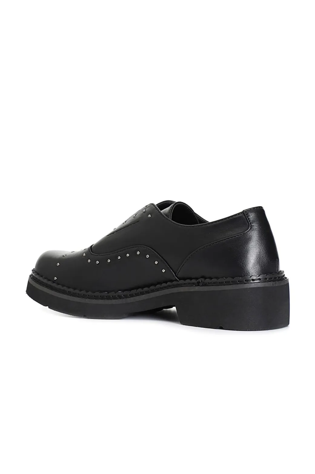 Francesina da donna con elastico e microborchie cromate applicate. il soletto è in pelle.