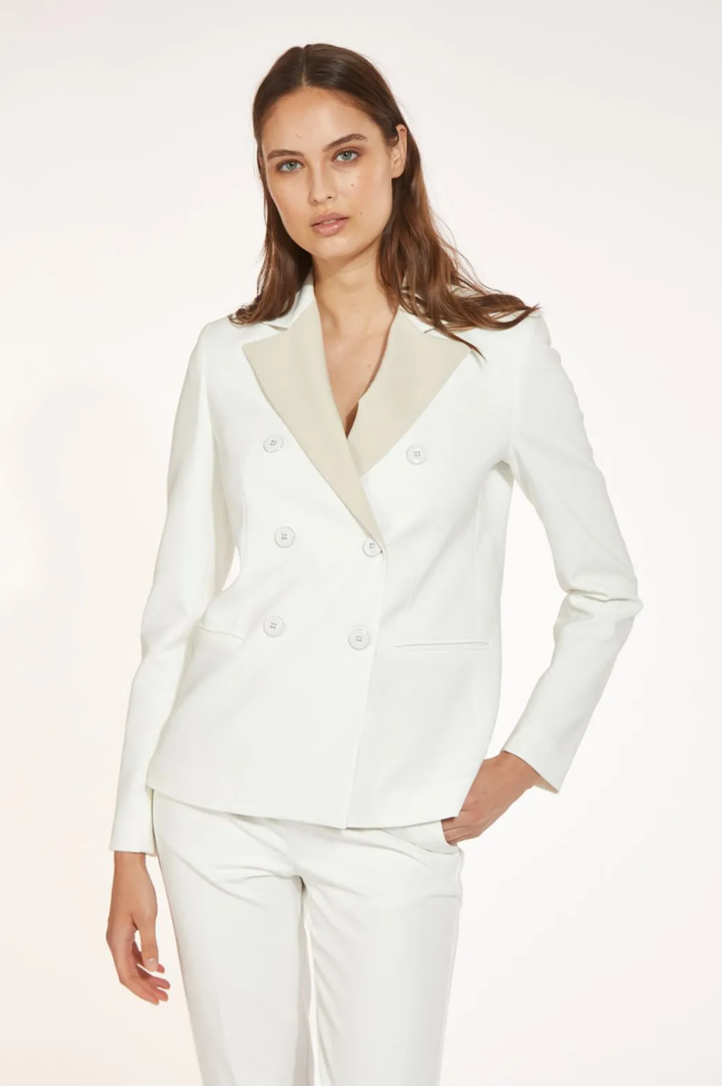 giacca doppiopetto con rever a contrasto