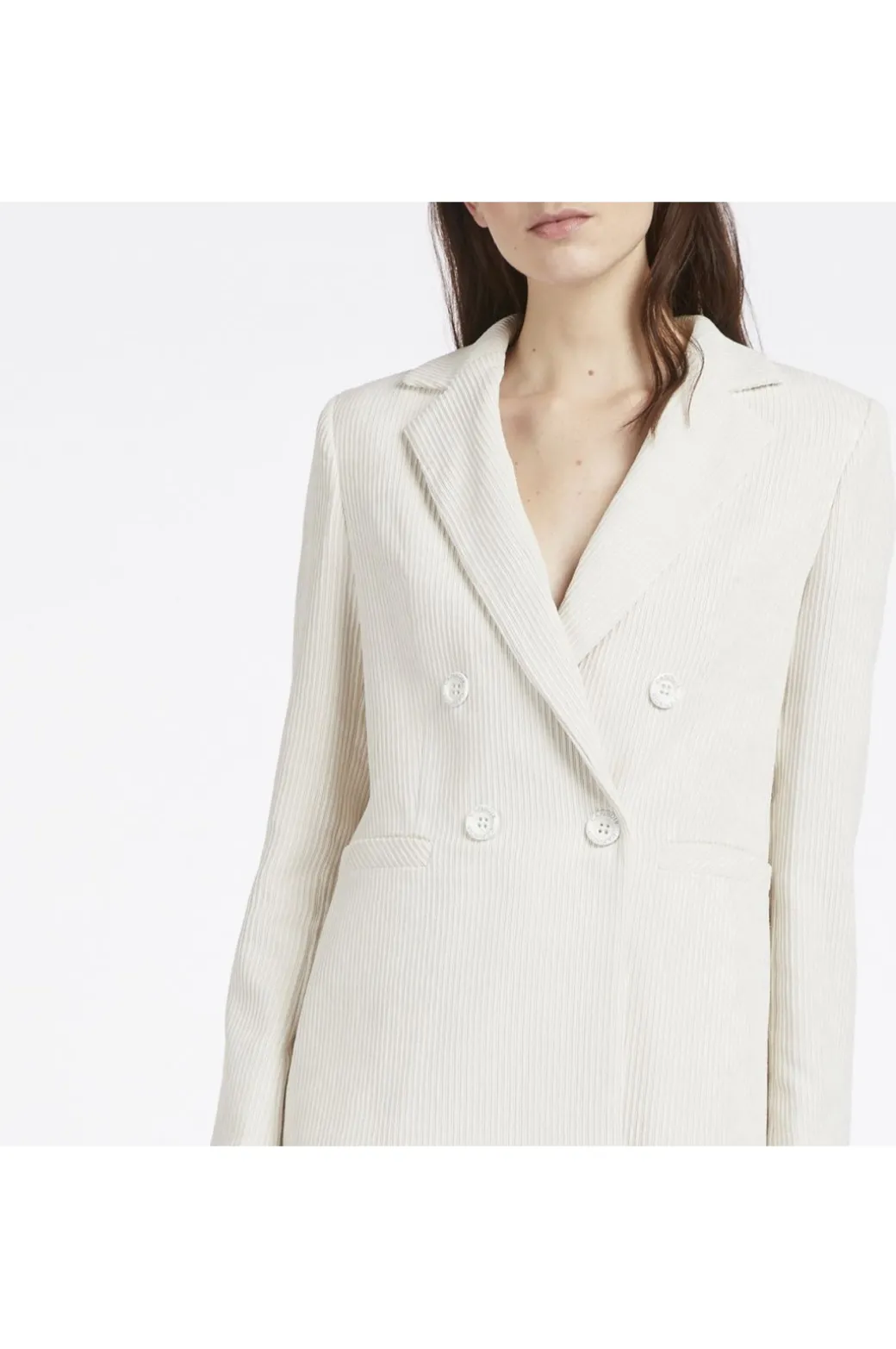 Giacca doppiopetto dritta in velluto rocciatore. Capo grintoso ma iper femminile.