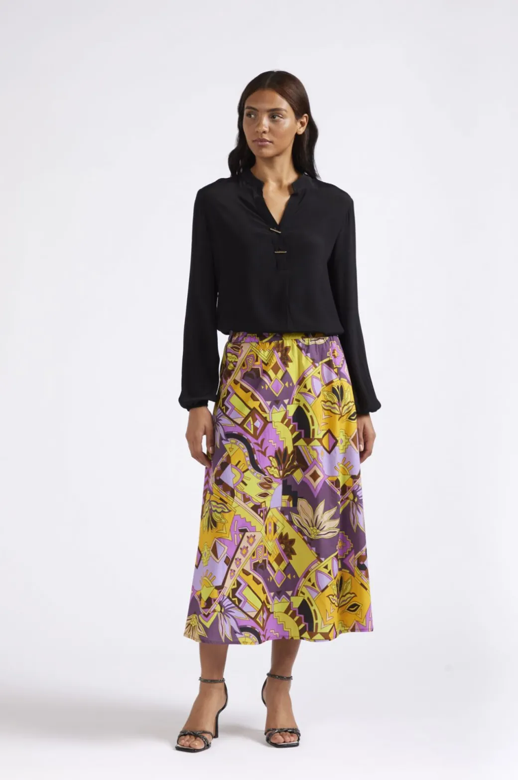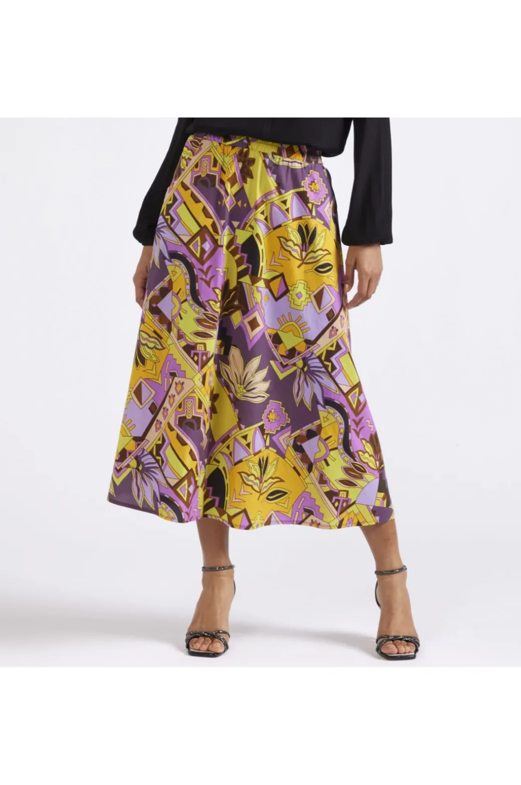 gonna con elastico in tessuto stampato etnica multicolor