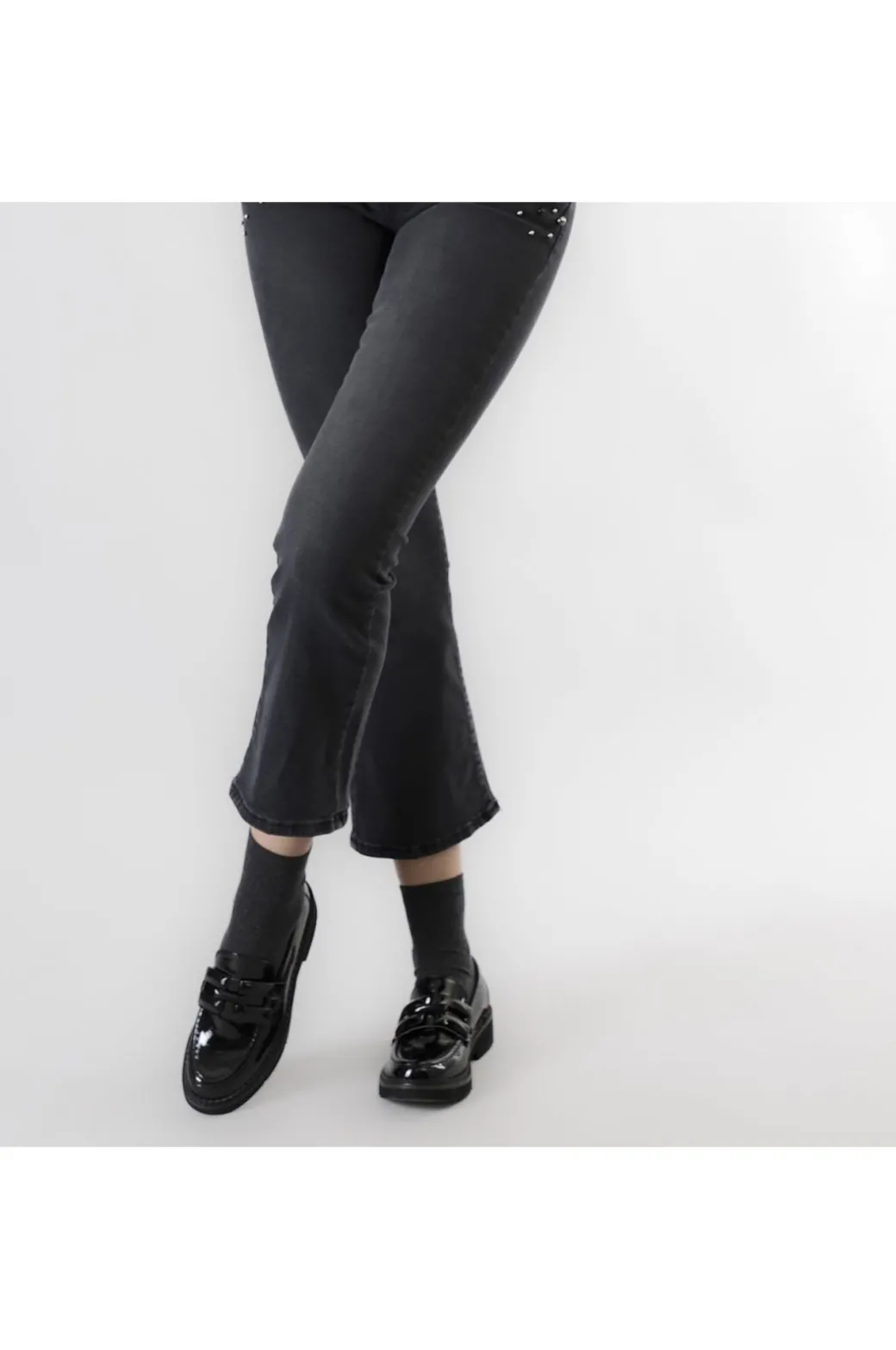 Be the first to review “jeans denim cropped flare con perle alle tasche antracite” Annulla risposta