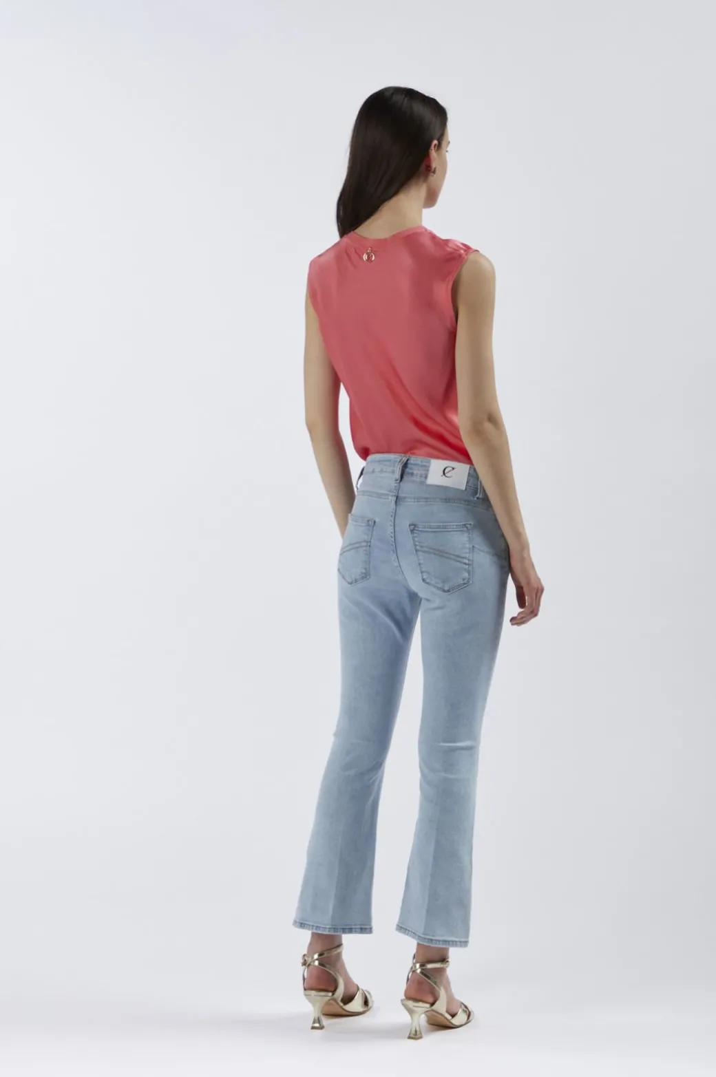 Jeans in tela denim super stretch dalla vestibilità cropped flare.