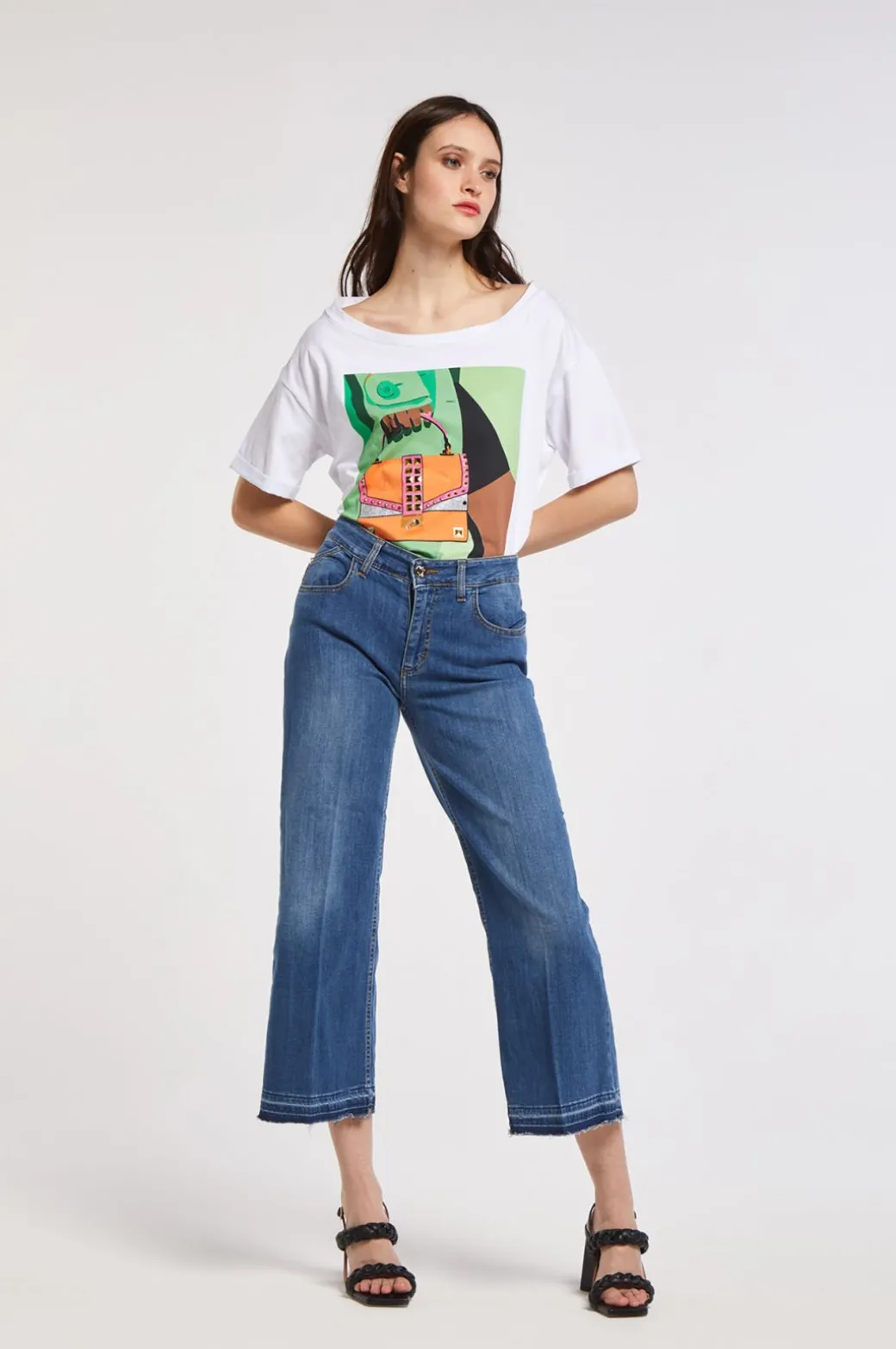 Jeans greta modello culotte in tela superstretch con orlo sfrangiato