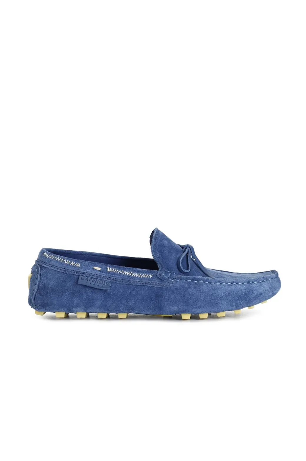 Mocassini uomo in pelle scamosciata con fiocco. suola con dots in gomma. calzatura leggera e versatile da abbinare a svariati look. assicura una calzata confortevole per tutto il giorno.