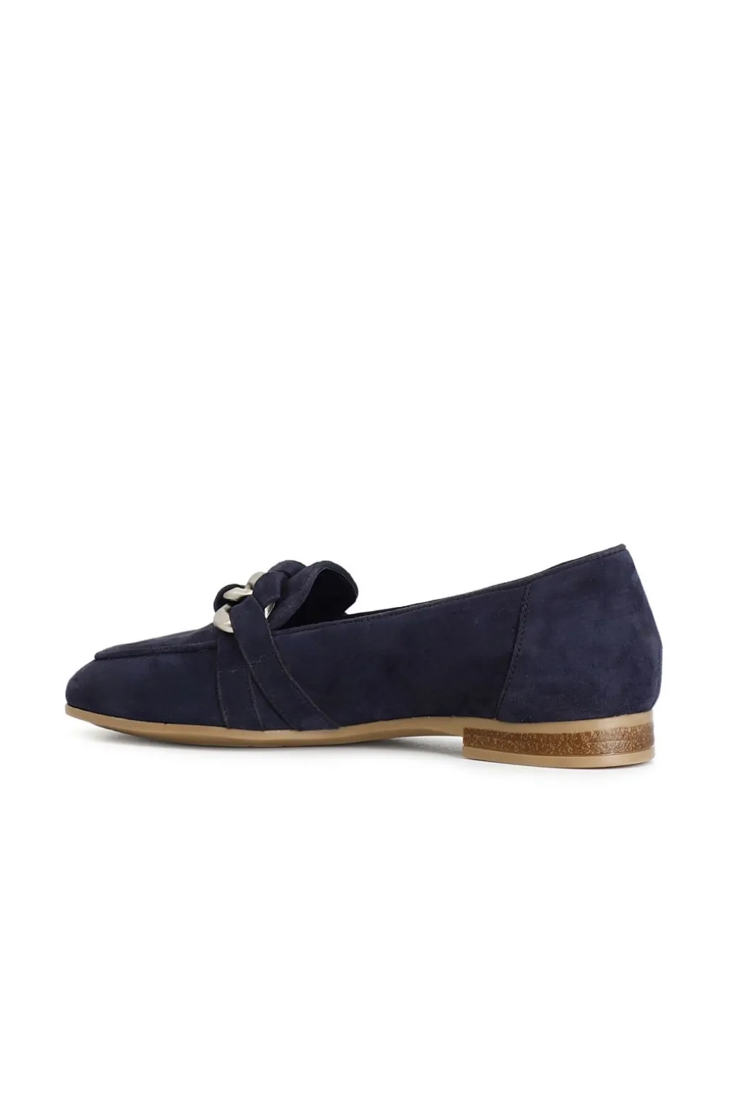 Mocassini donna in pelle scamosciata arricchiti da un morsetto a catena. il soletto è in pelle. tacco alto 15mm. modello versatile e dinamico ideale per completare moltissimi outfit.