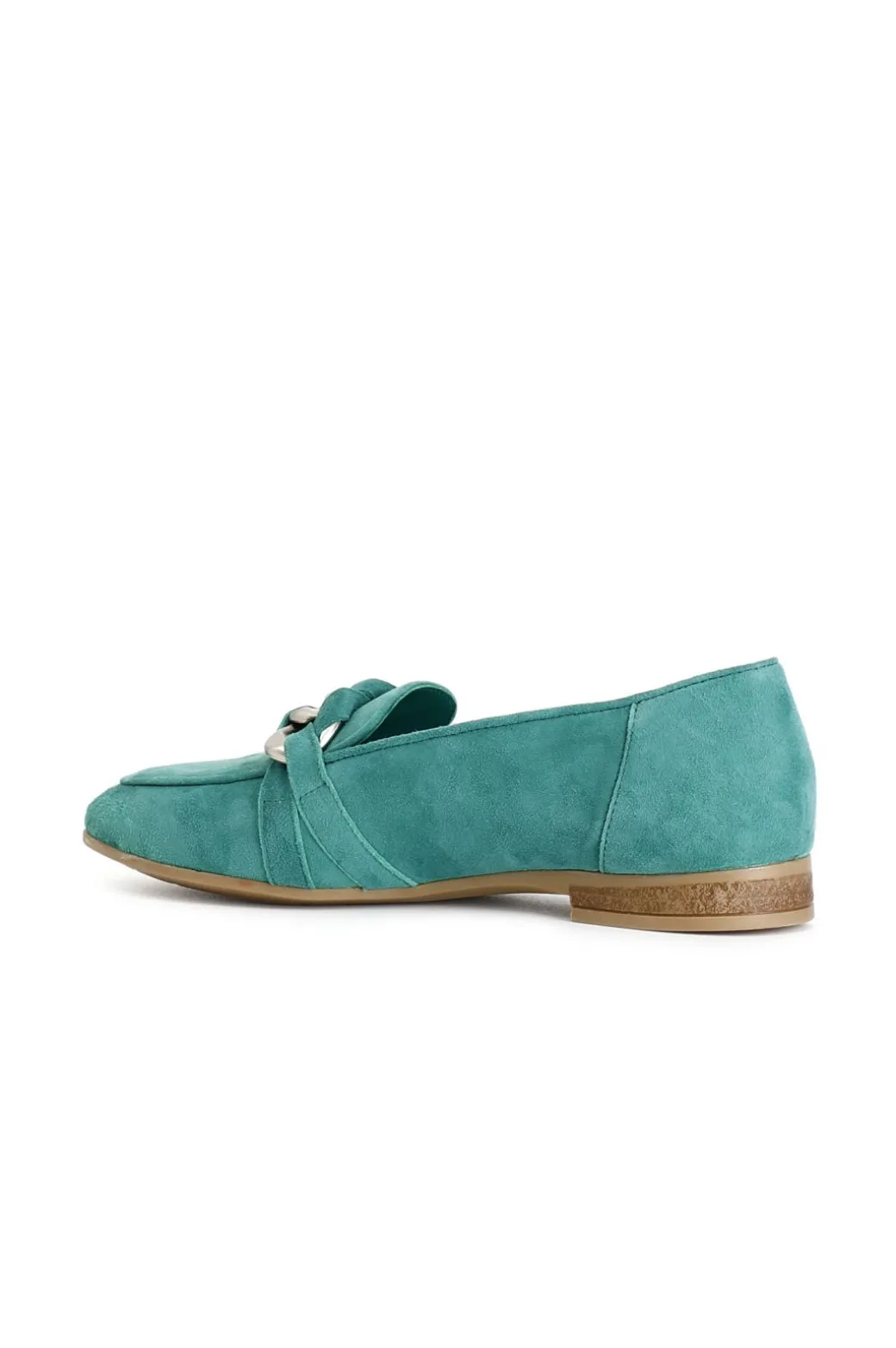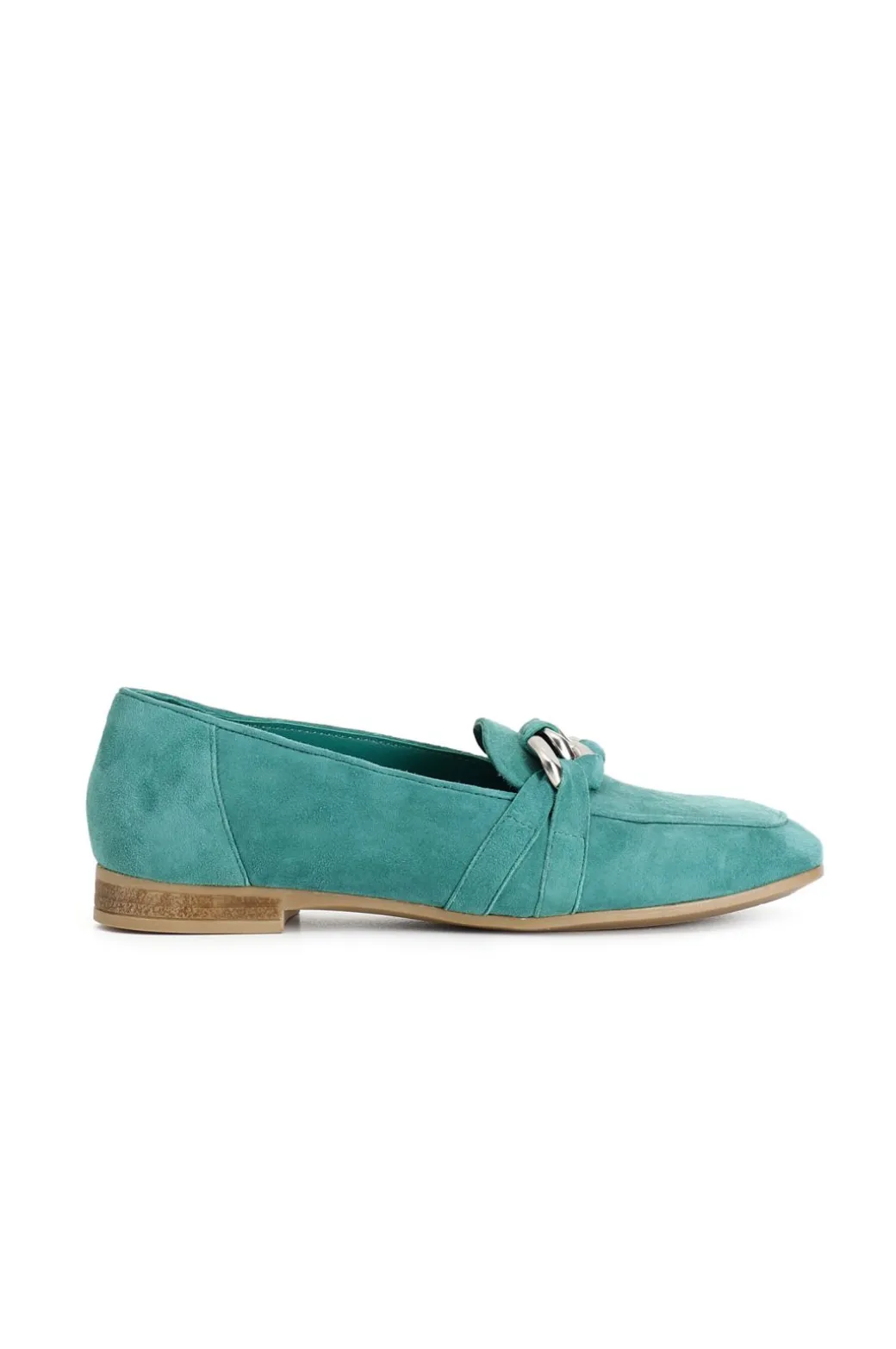 Mocassini donna in pelle scamosciata arricchiti da un morsetto a catena. il soletto è in pelle. tacco alto 15mm. modello versatile e dinamico ideale per completare moltissimi outfit.