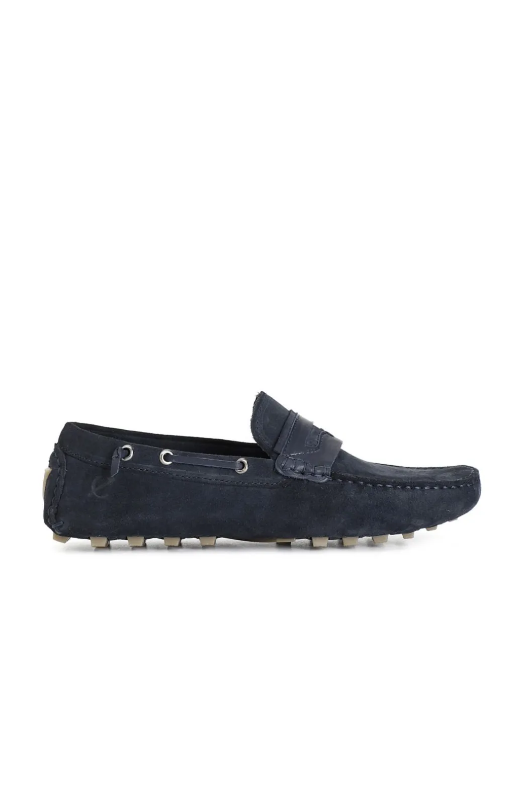 Mocassini uomo in pelle scamosciata con passante. suola con dots in gomma. calzatura leggera e versatile da abbinare a svariati look. assicura una calzata confortevole per tutto il giorno.