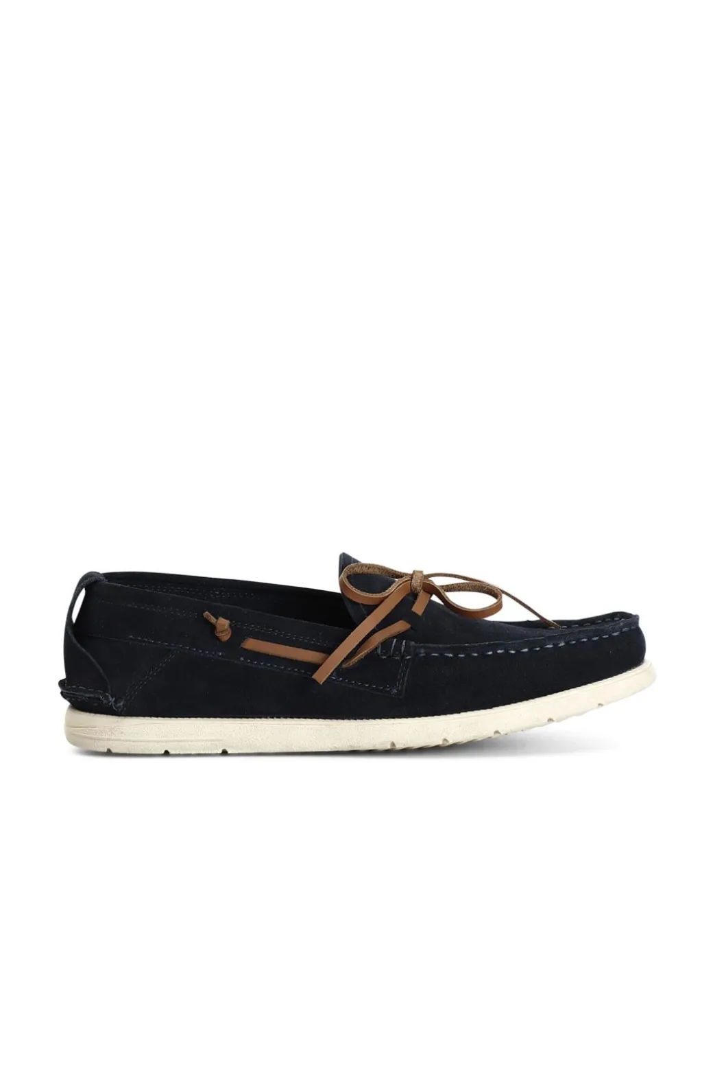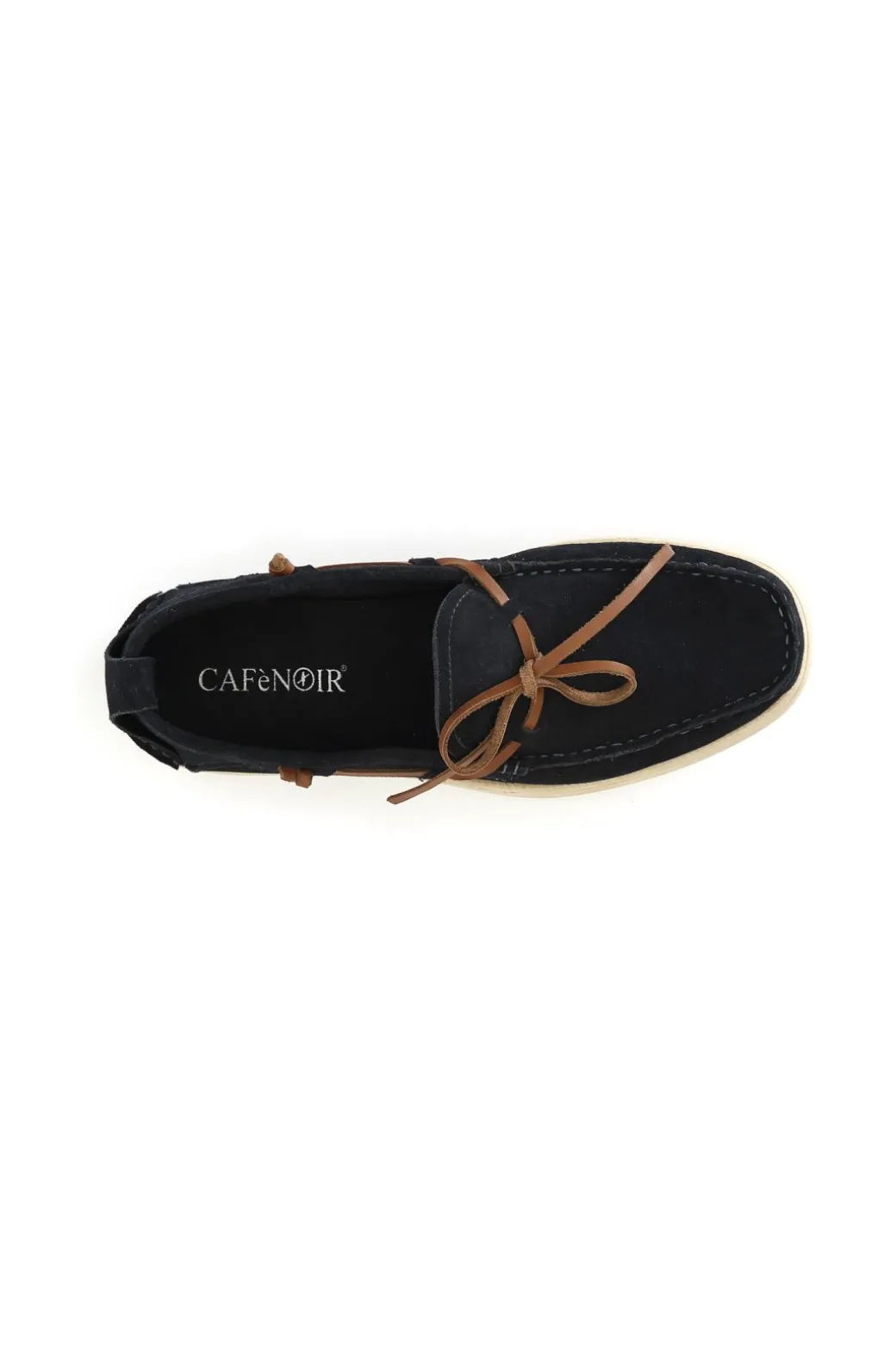 Mocassini uomo in pelle scamosciata con passanti e fiocco. soletto in pelle.