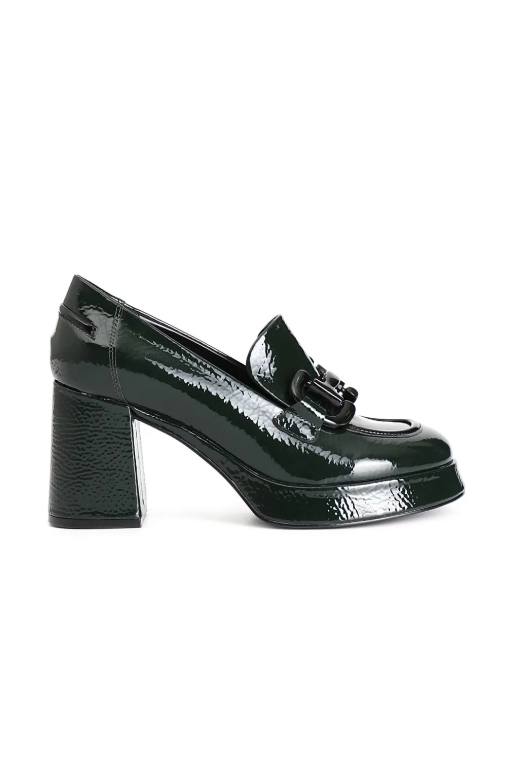 Mocassino da donna in naplak con morsetto. tacco 80 mm plateau 20 mm. fodera in tessuto e soletto in pelle. comodità ed eleganza allo stesso tempo ed un carattere unico adatto ad ogni outfit.