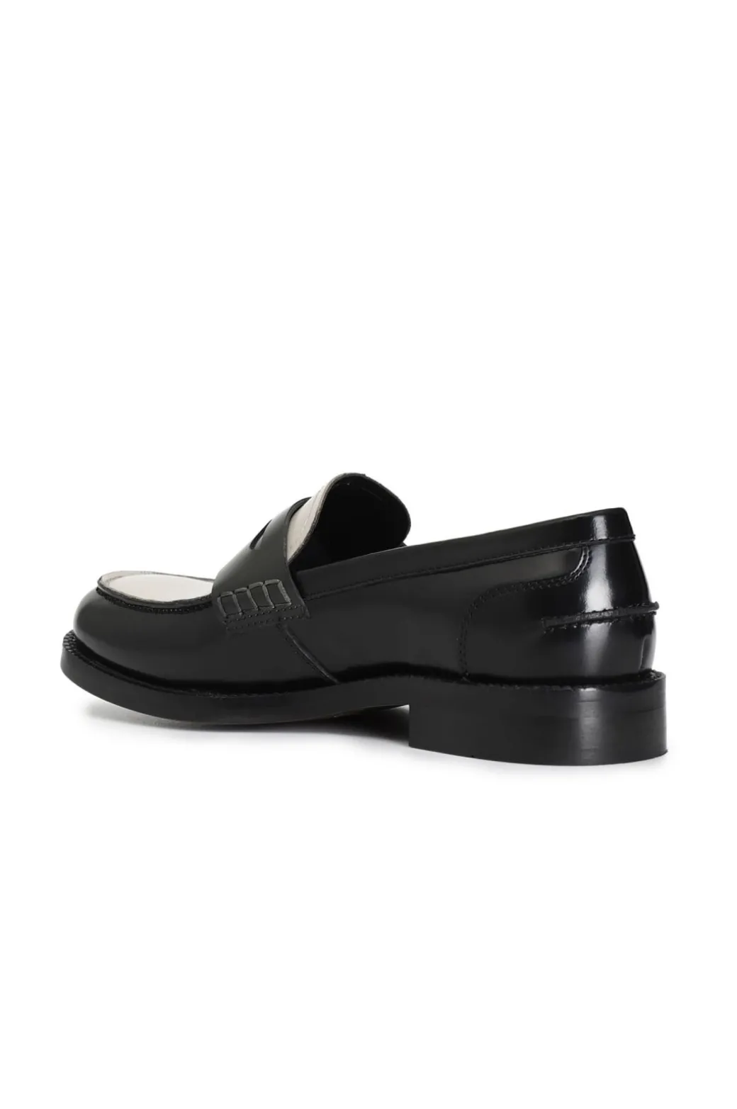 Mocassino da donna in pelle abrasivata multicolore con accessorio moneta. fodera e soletto sono in pelle. tacco alto 25 mm.