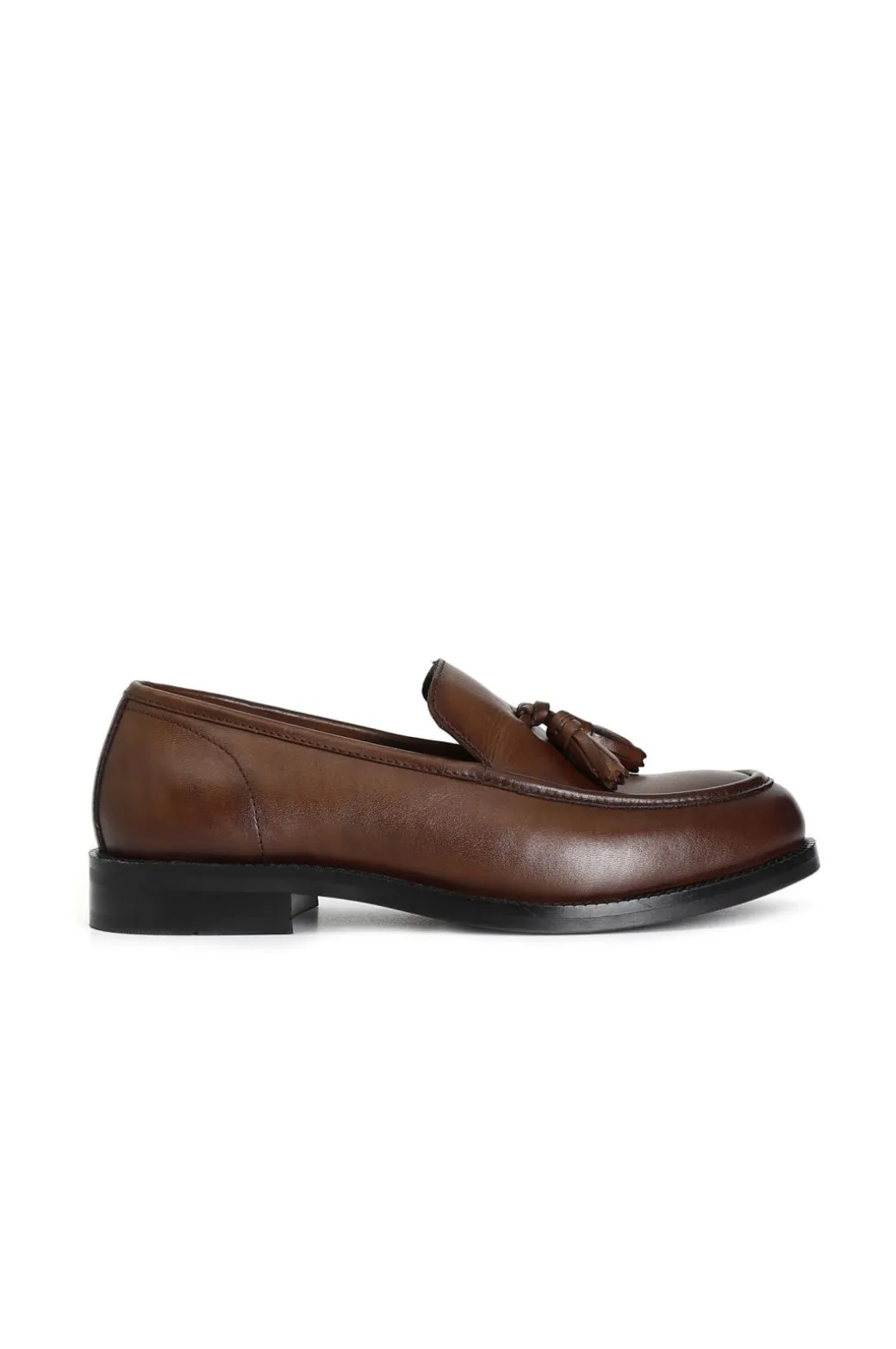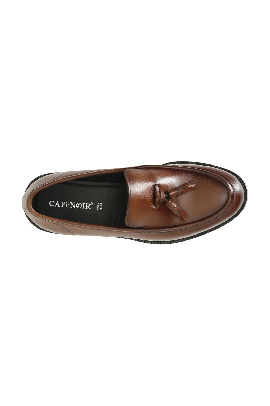 Mocassino da donna in pelle con nappine. fodera e soletto sono in pelle. tacco alto 25 mm.