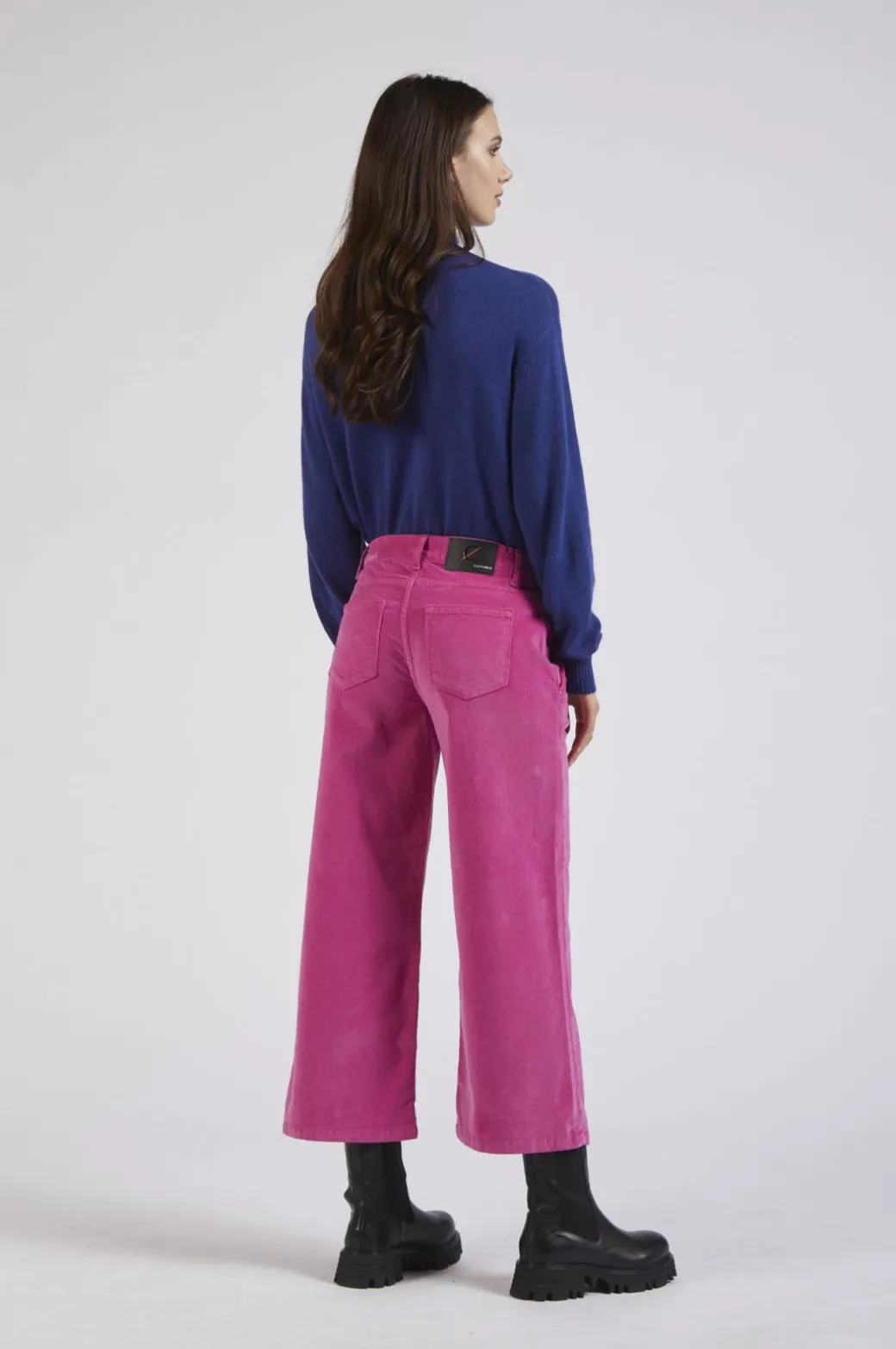 Pantaloni dalla vestibilità culotte in tinto capo realizzati in velluto 2000 righe. modello elasticizzato.