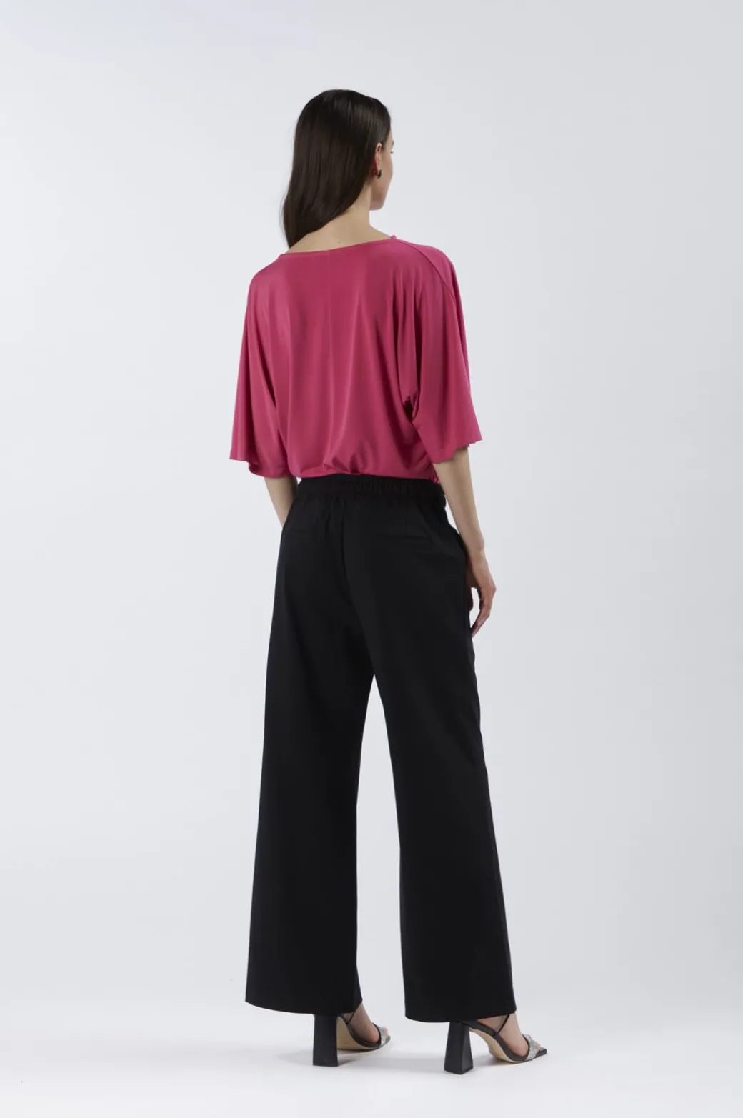 Pantaloni dritti con cintura elastica realizzati in tessuto elasticizzato. comodi e pratici per un look casual impeccabile.
