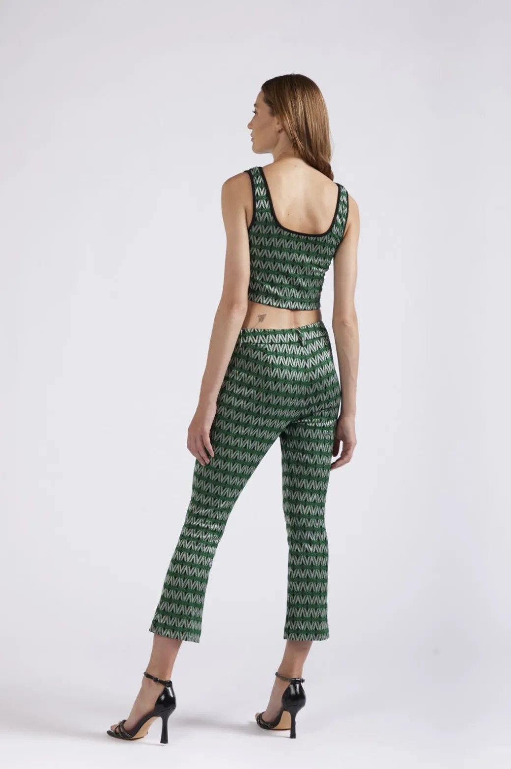 pantaloni cropped flare tessuto jacquard rombo multiverde