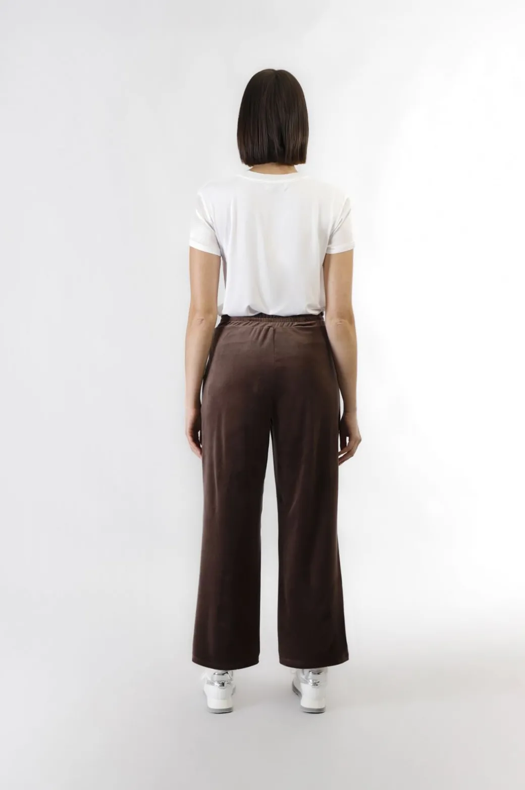 Pantaloni sportivi dalla vestibilità palazzo realizzati in una soffice ciniglia. modello con vita elastica e tasche sui fianchi donano praticità e comfort a chi li indossa.