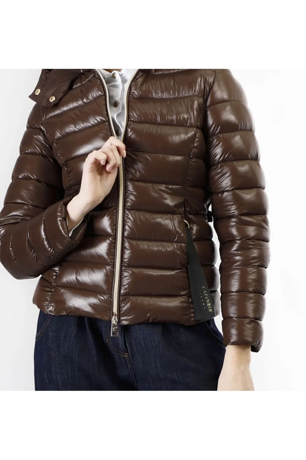 Piumino corto con cintura dalla fibbia logata realizzato in nylon ultraligth dalla finitura lucida. cappuccio removibile. versatile e pratico capo immancabile nel guardaroba della nuova stagione autunno inverno.