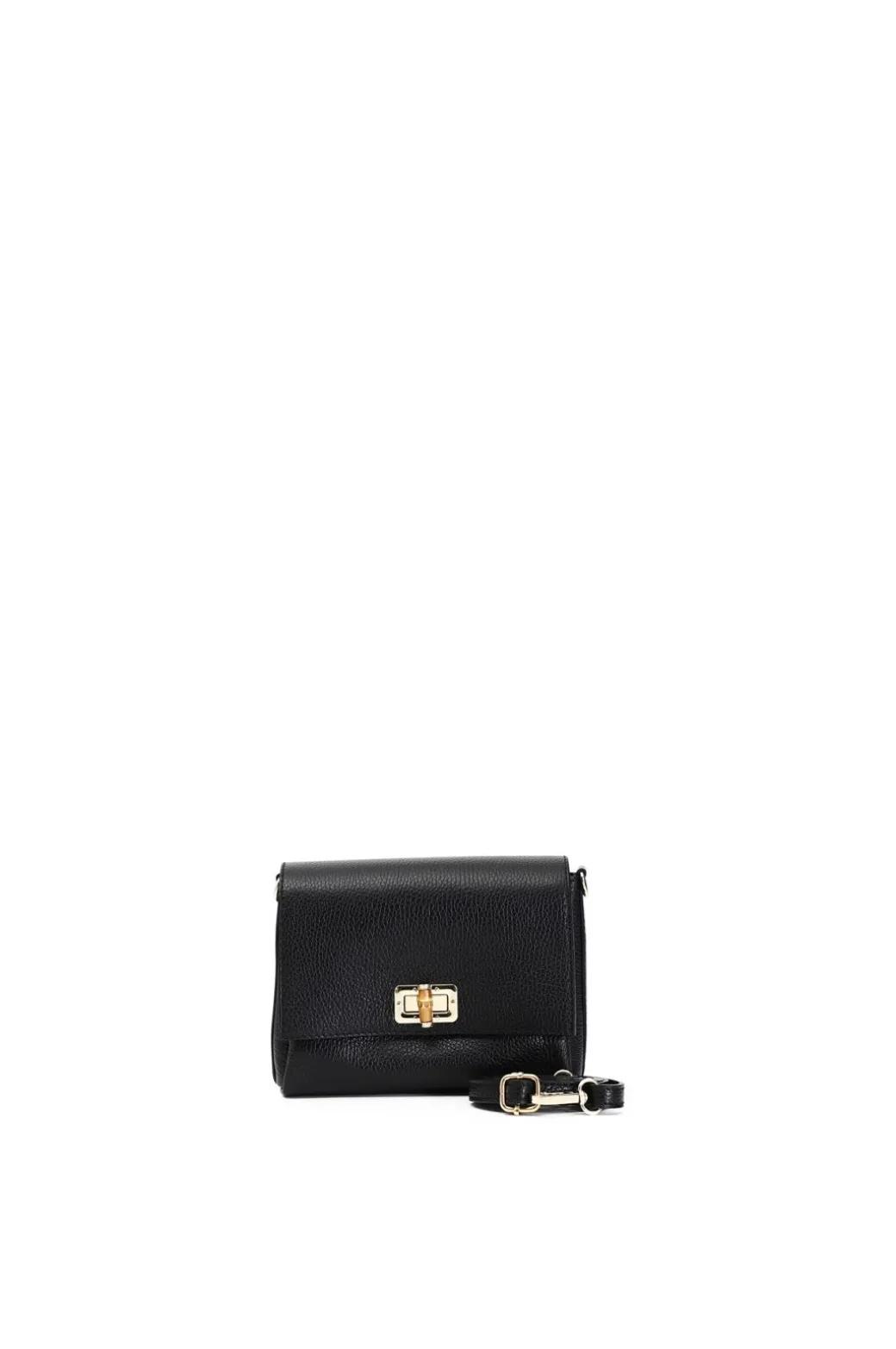Pochette in pelle martellata con pattina con chiusura metallo e bamboo. borsa dotata di tracolla.