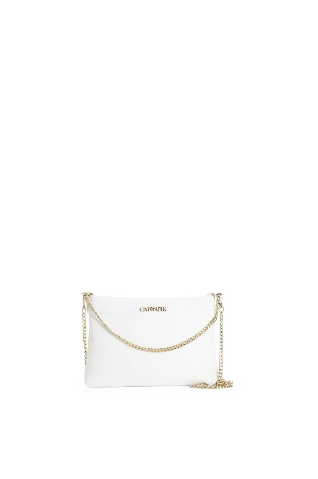 Pochette in pelle martellata con doppia tracolla in catena.