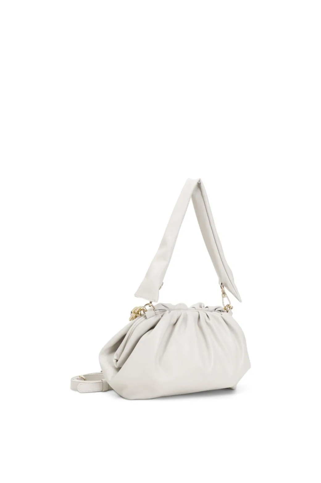 Pochette morbida chiusa con cerniera a scatto impreziosita da una catena fasciata in materiale sintetico