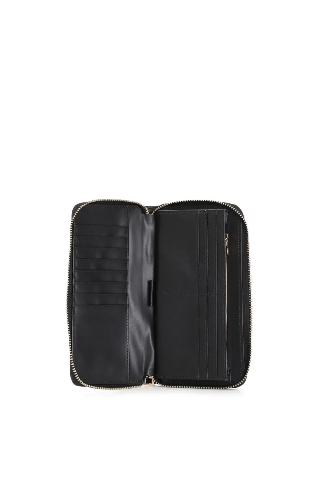 portafoglio zip round con lavorazione patchwork con applicazone di microrivetti nero