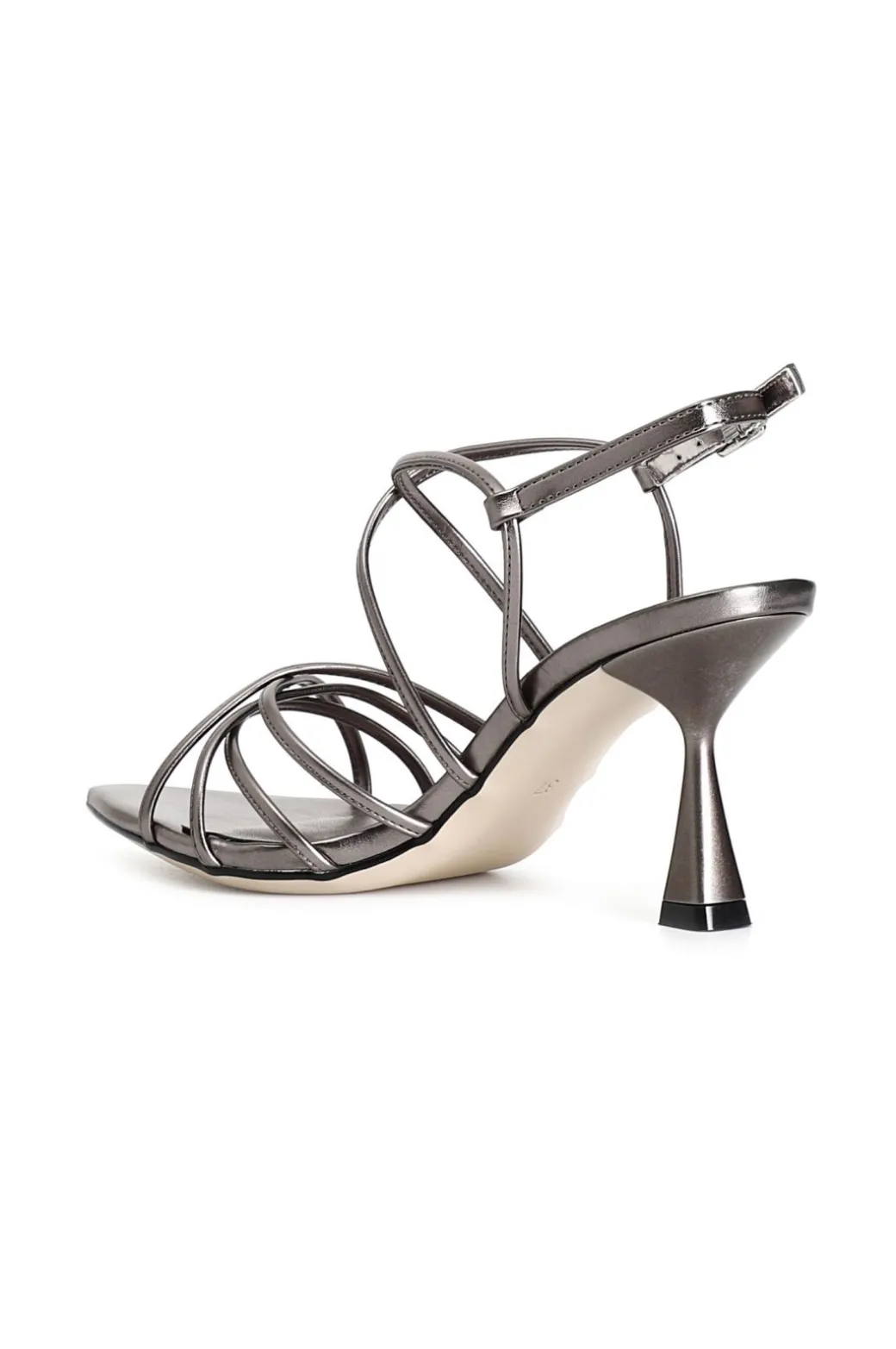 Sandali effetto laminato multi listini incrociati. soletto in pelle. dalla forma sfilata questa calzatura ti regalerà un tocco di eleganza e glamour. tacco a rocchetto alto 70mm.