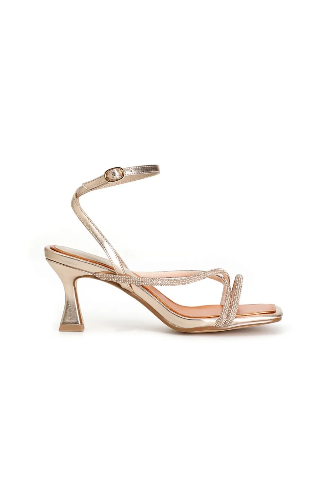 Sandali incrociocon strass e laccio alla caviglia. tacco h. 70mm