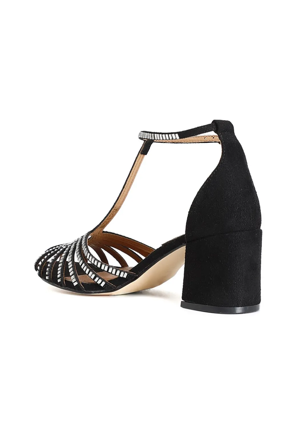 Sandali gabbia a t in microfibra e strass cinturino alla caviglia e tacco h. 60mm