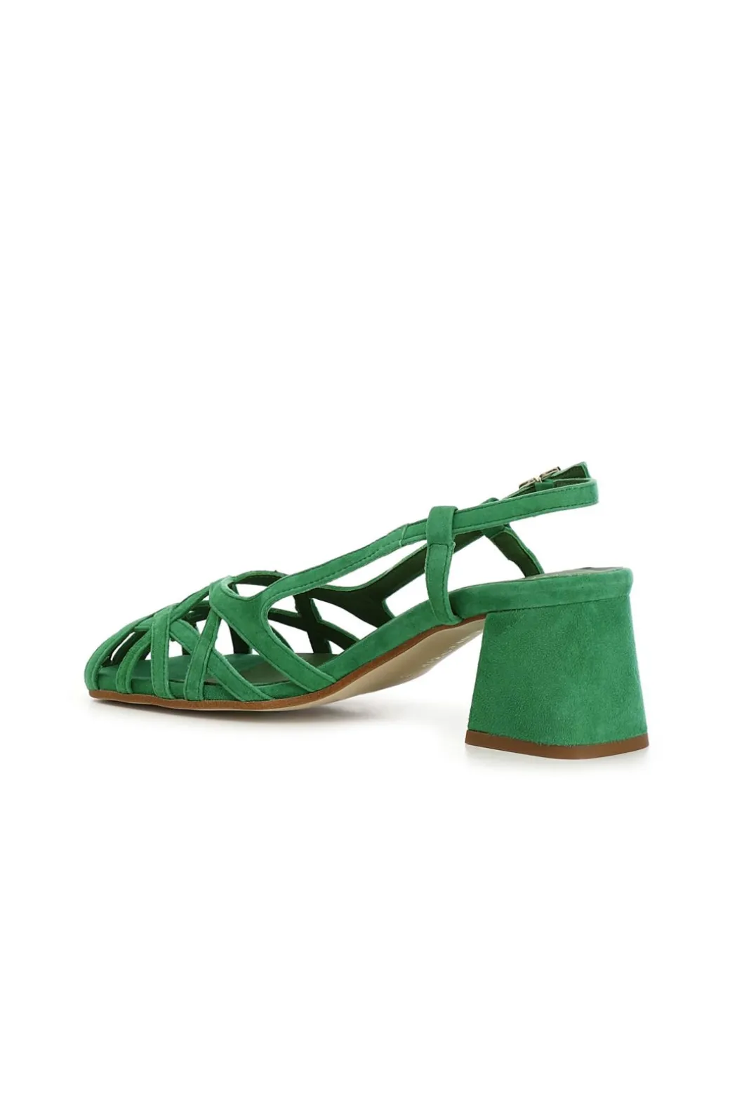 Scarpe in suede realizzate in camoscio con gabbia asimmetrica intrecciata. tacco da 5 cm fasciato con lo stesso pellame