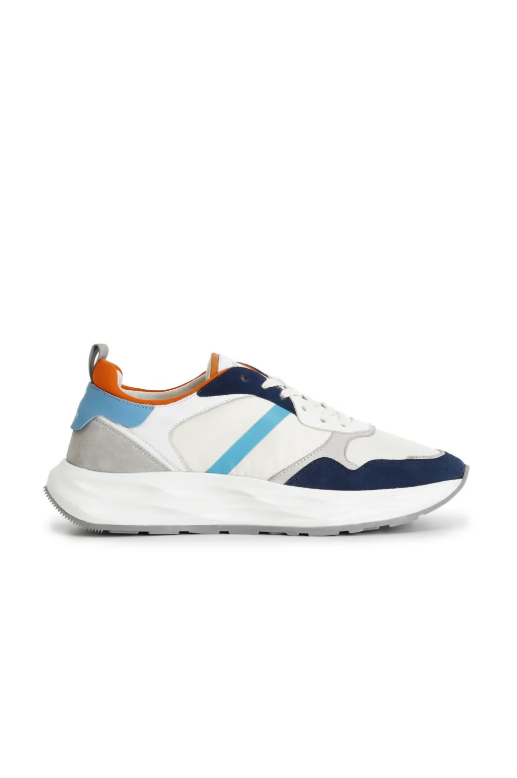 Scarpe running uomo multicolor in pelle e tessuto con nuova suola caratterizzata da un gioco di scavature che rendono la calzatura unica nel suo genere.