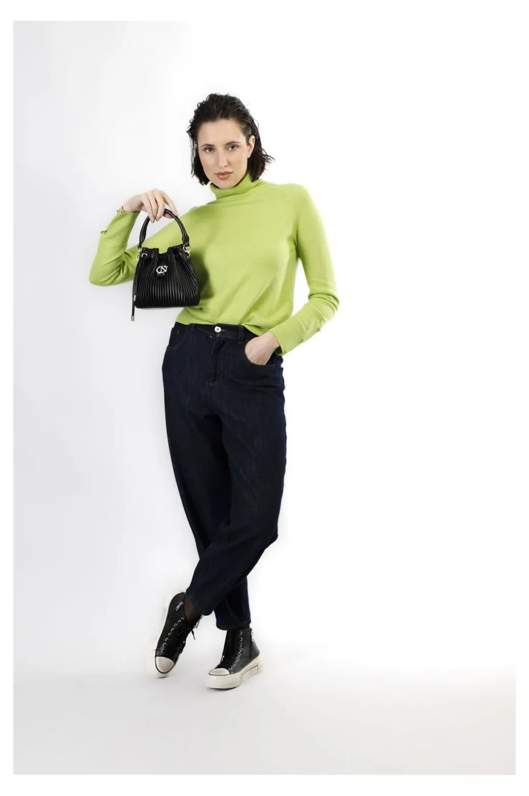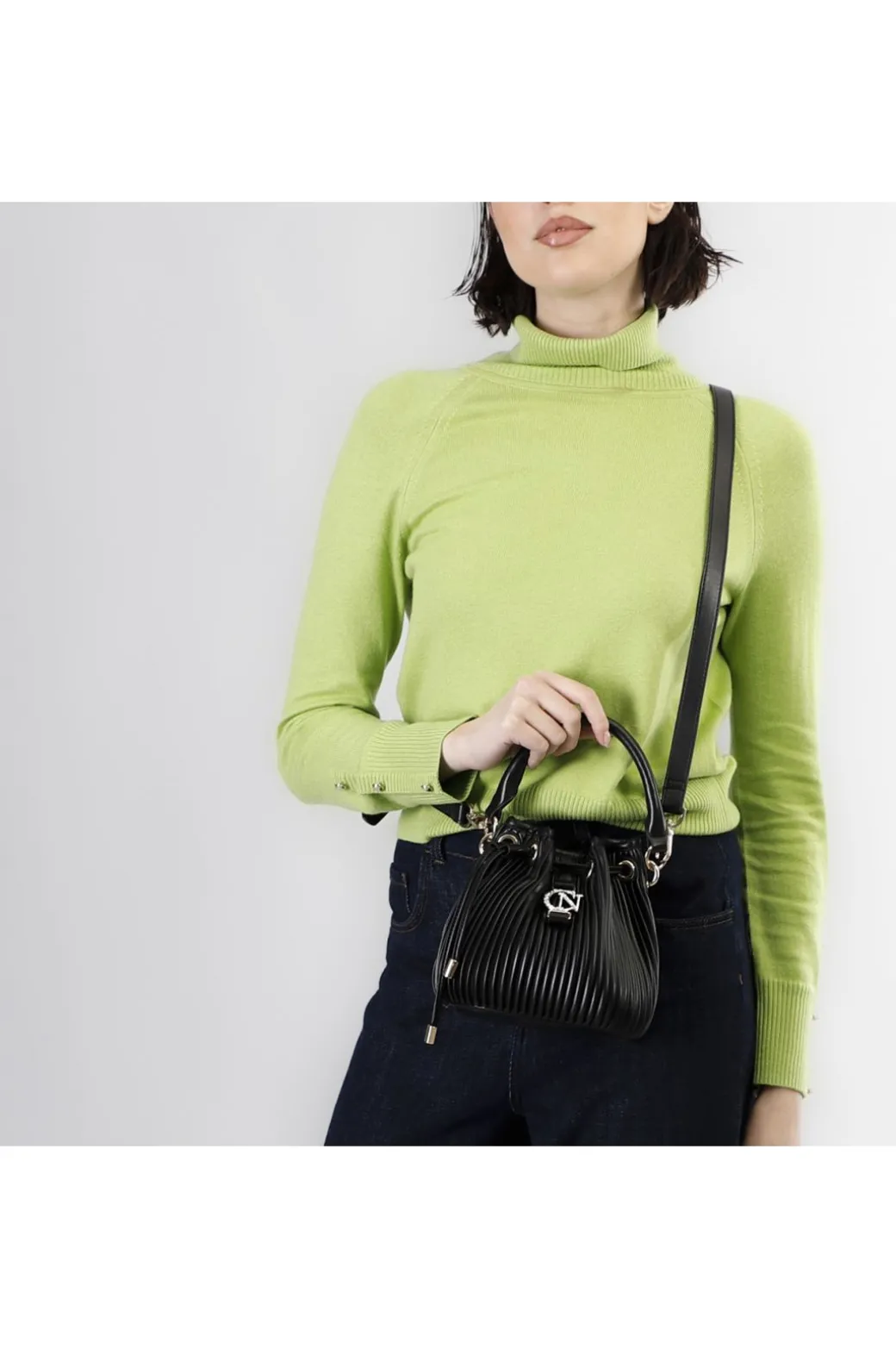 secchiello con coulisse in plissè nero
