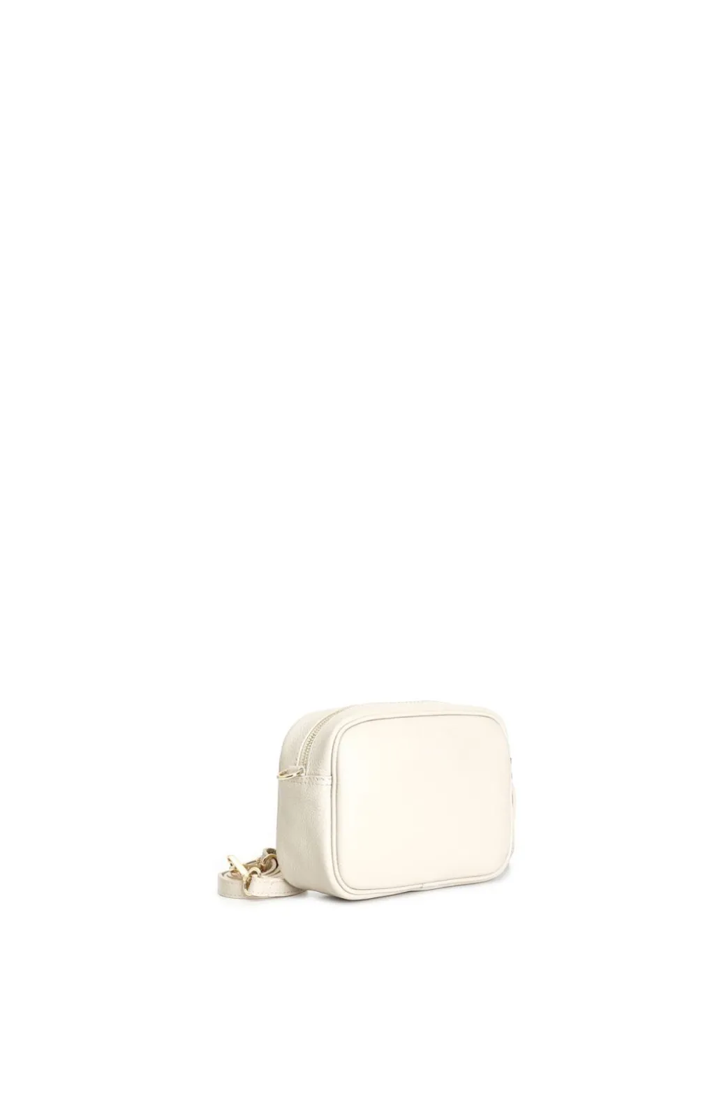 shopping bag con pattina , applicazione di morsetto verniciato,tracolla removibi panna