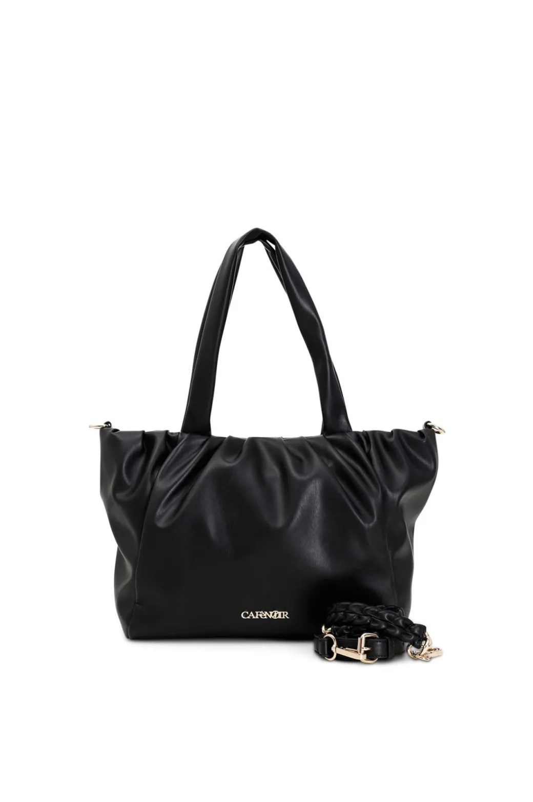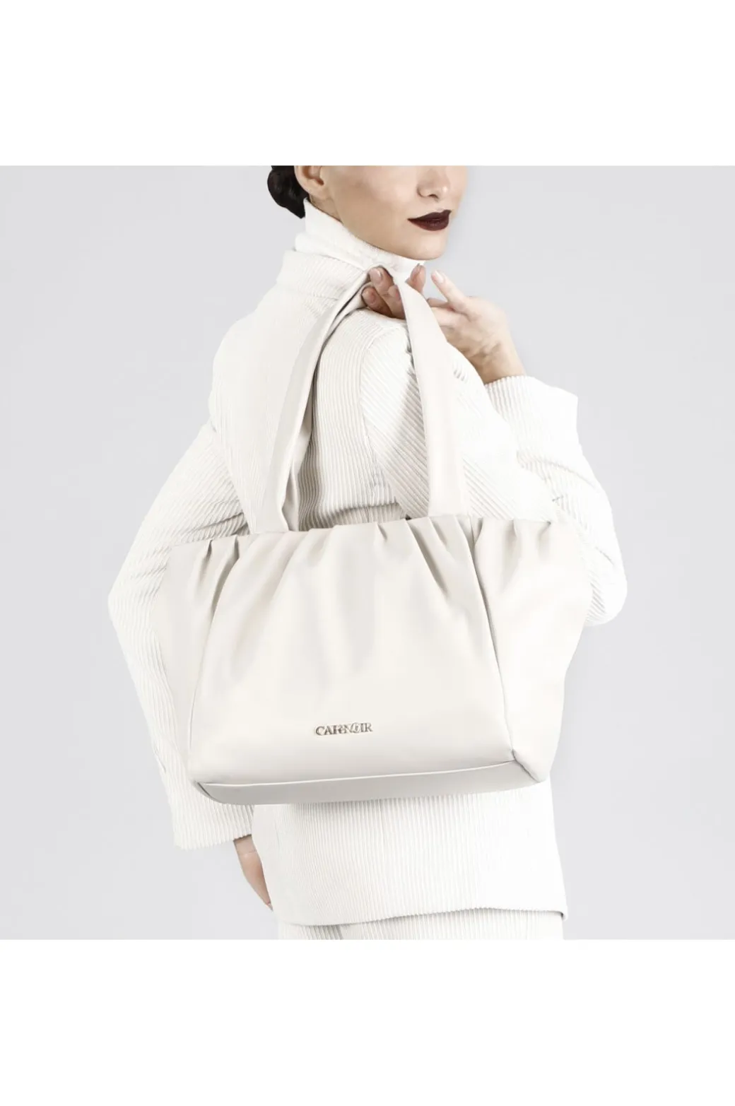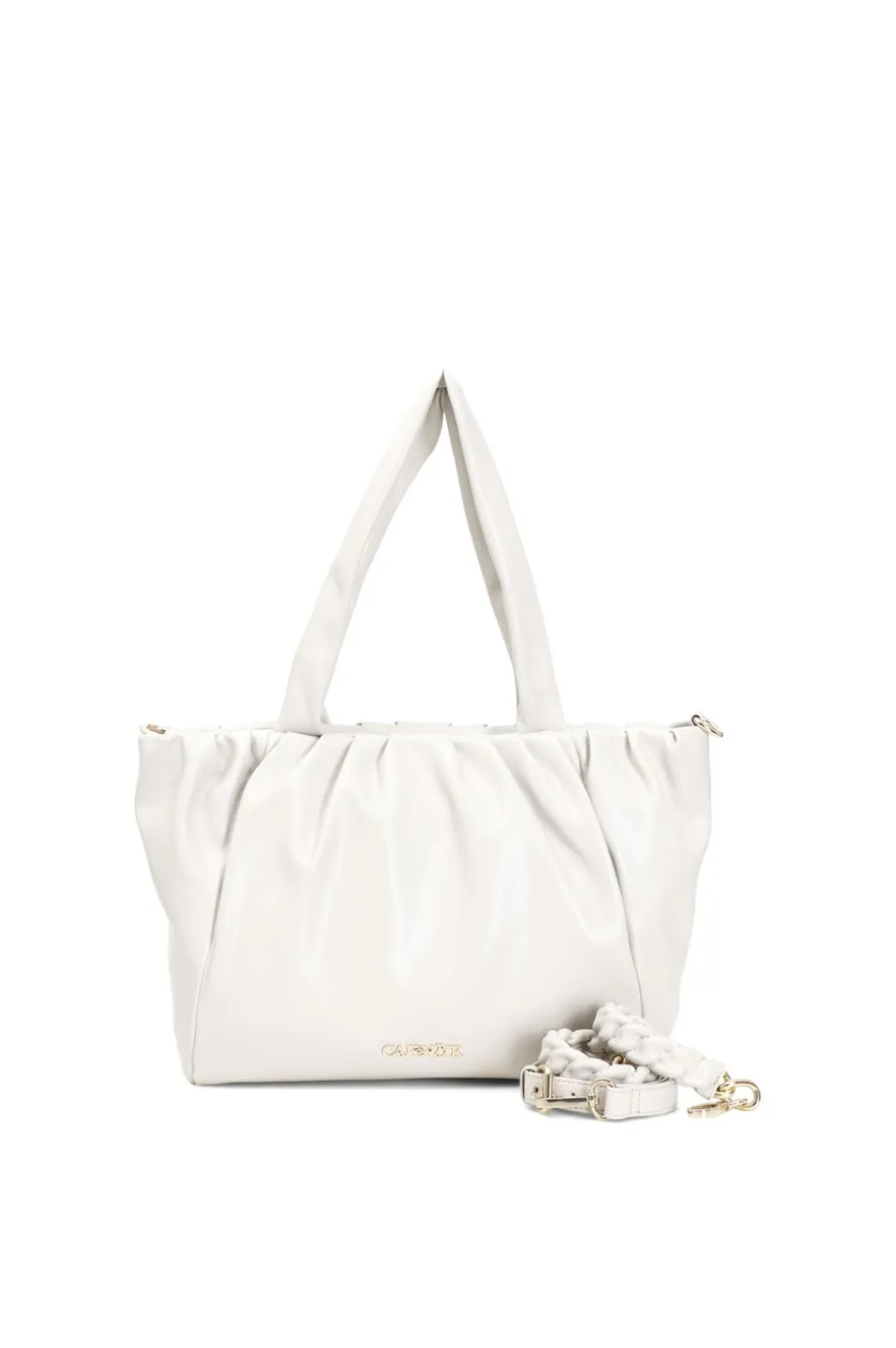 Shopping ambia e morbida con pieghe, impreziosita da una catena fasciata in materiale sintetico