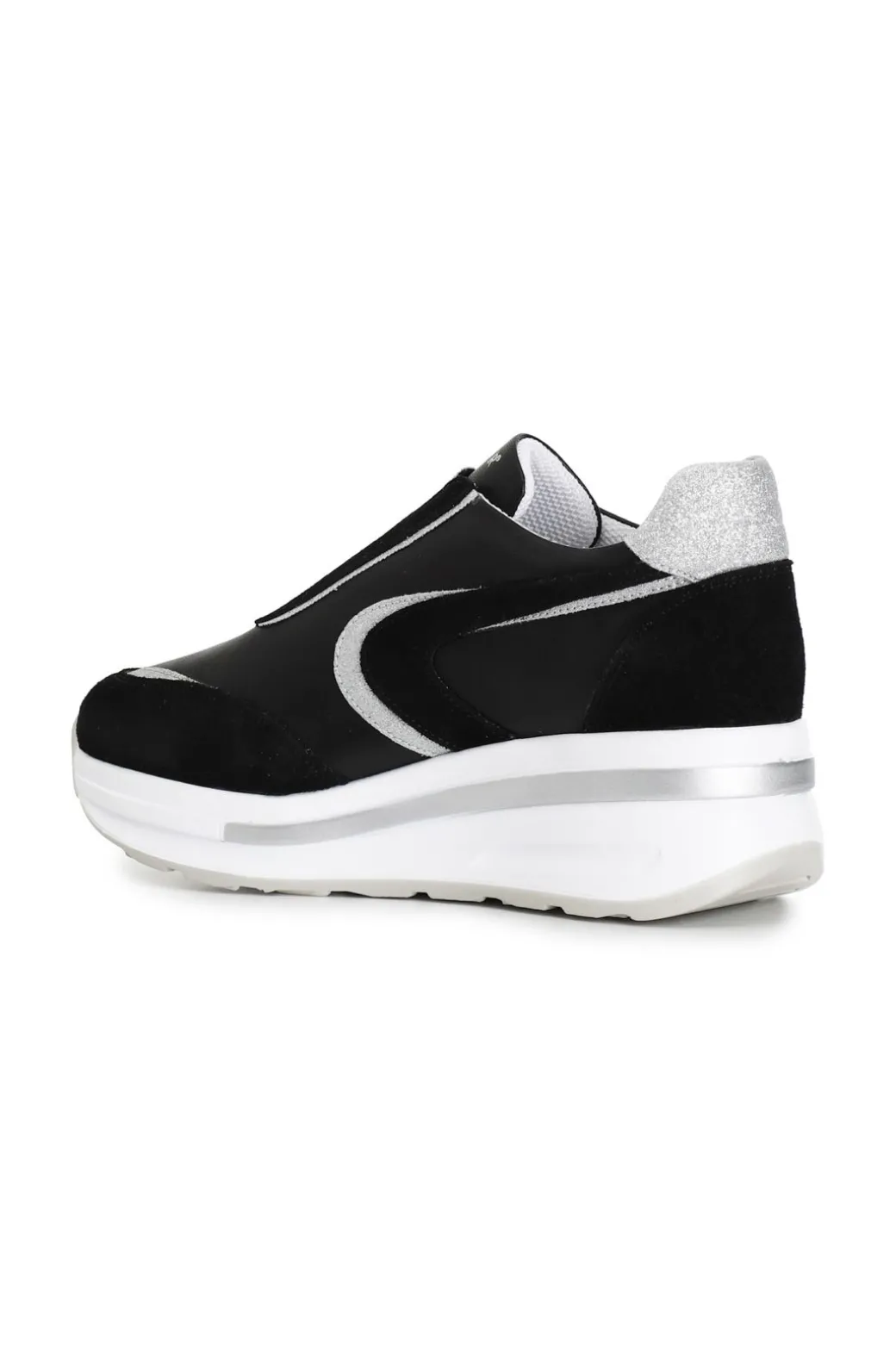 Sneakers modello slip-on in pelle con inserti glitter. suola con zeppa bicolor di 40mm con logo embossed.