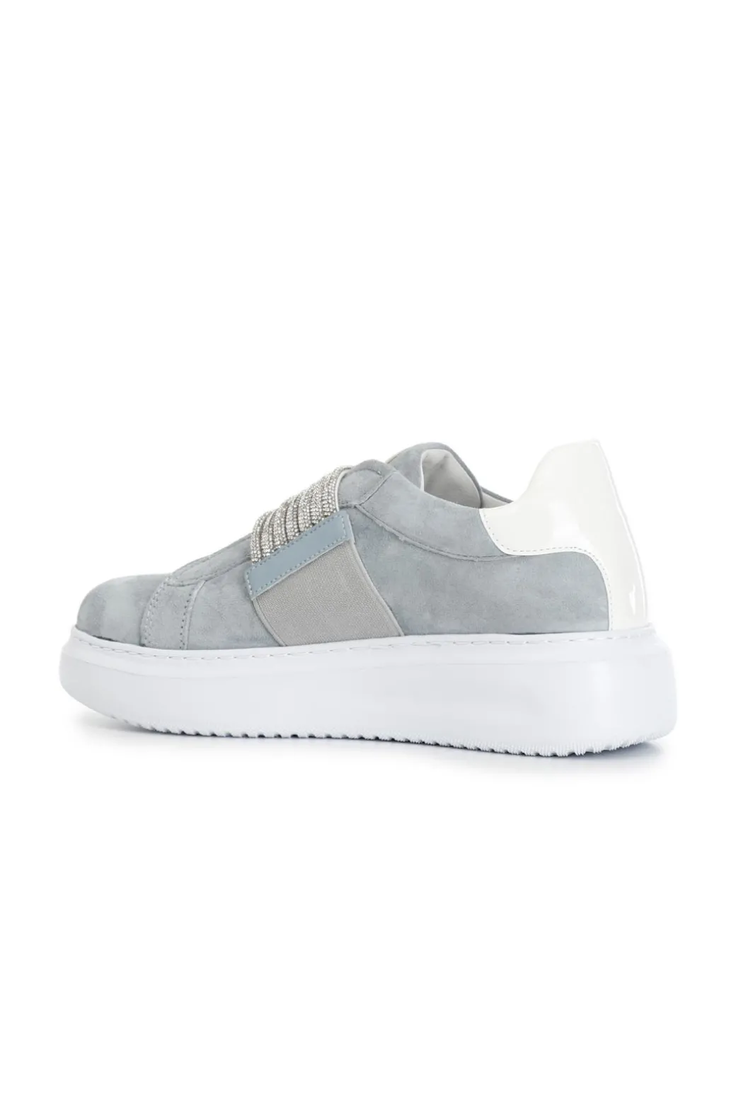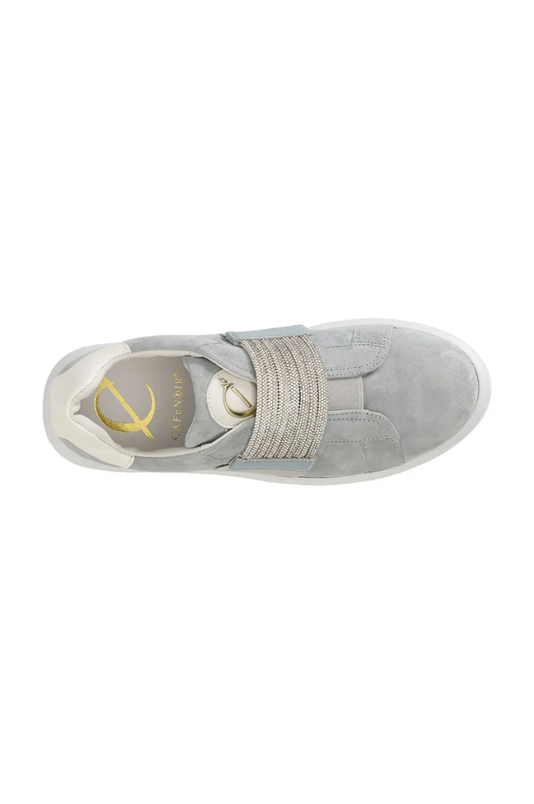 Sneakers modello slip-on in camoscio arricchita da una fascia di strass. tomaia e sottopiede in pelle. suola a cassetta.